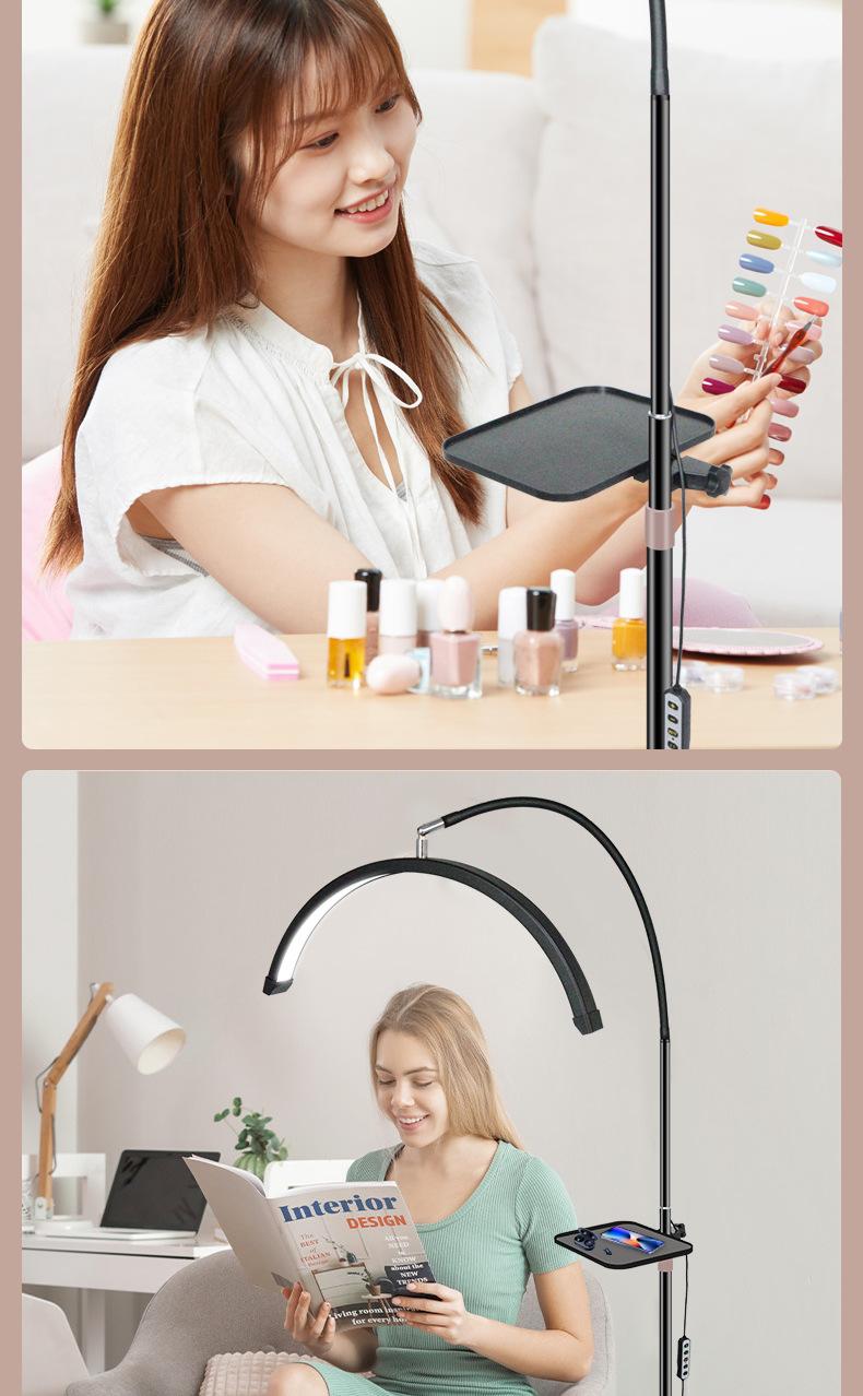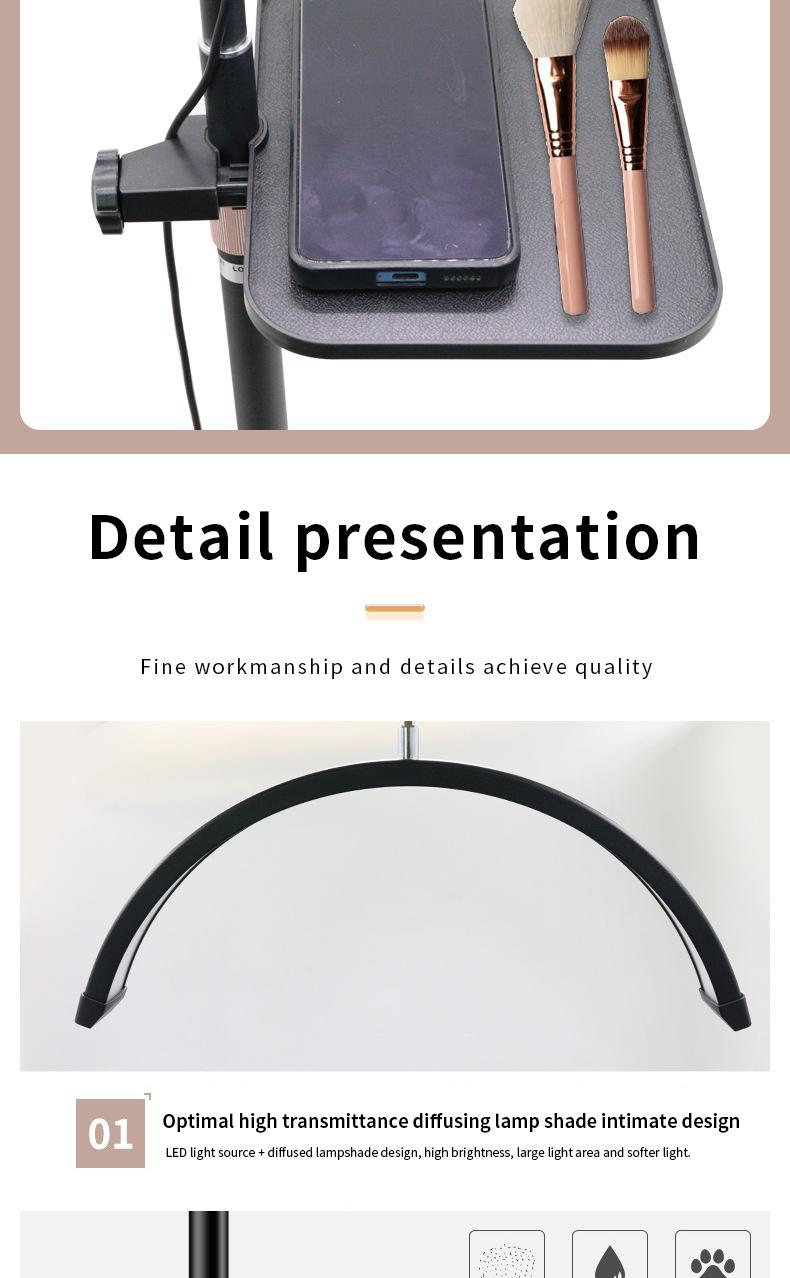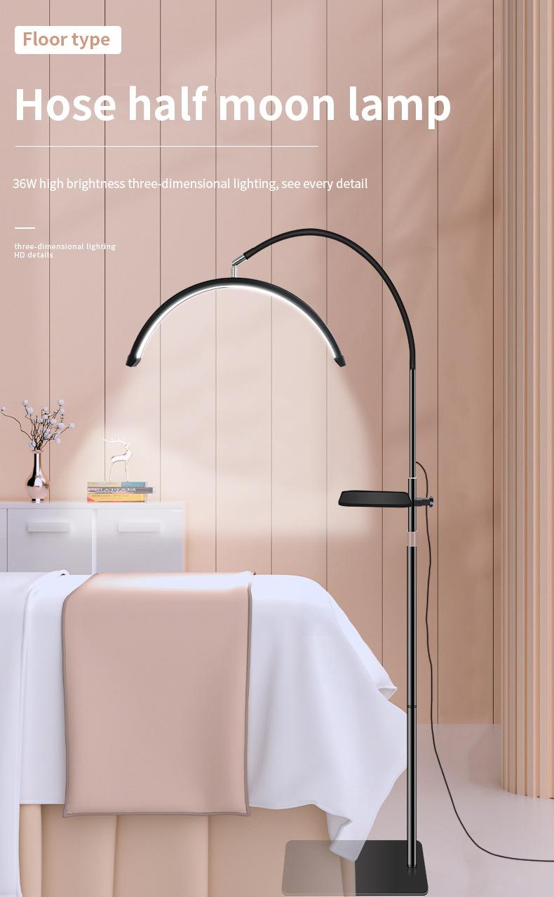 Nova Lâmpada de Beleza Meia Lua de 21 polegadas para Tatuagem, Nail Art, Tatuagem de Sobrancelha, Lâmpada para Cílios, Luz de Preenchimento de Chão com Proteção para os Olhos com Bandeja de Armazenamento