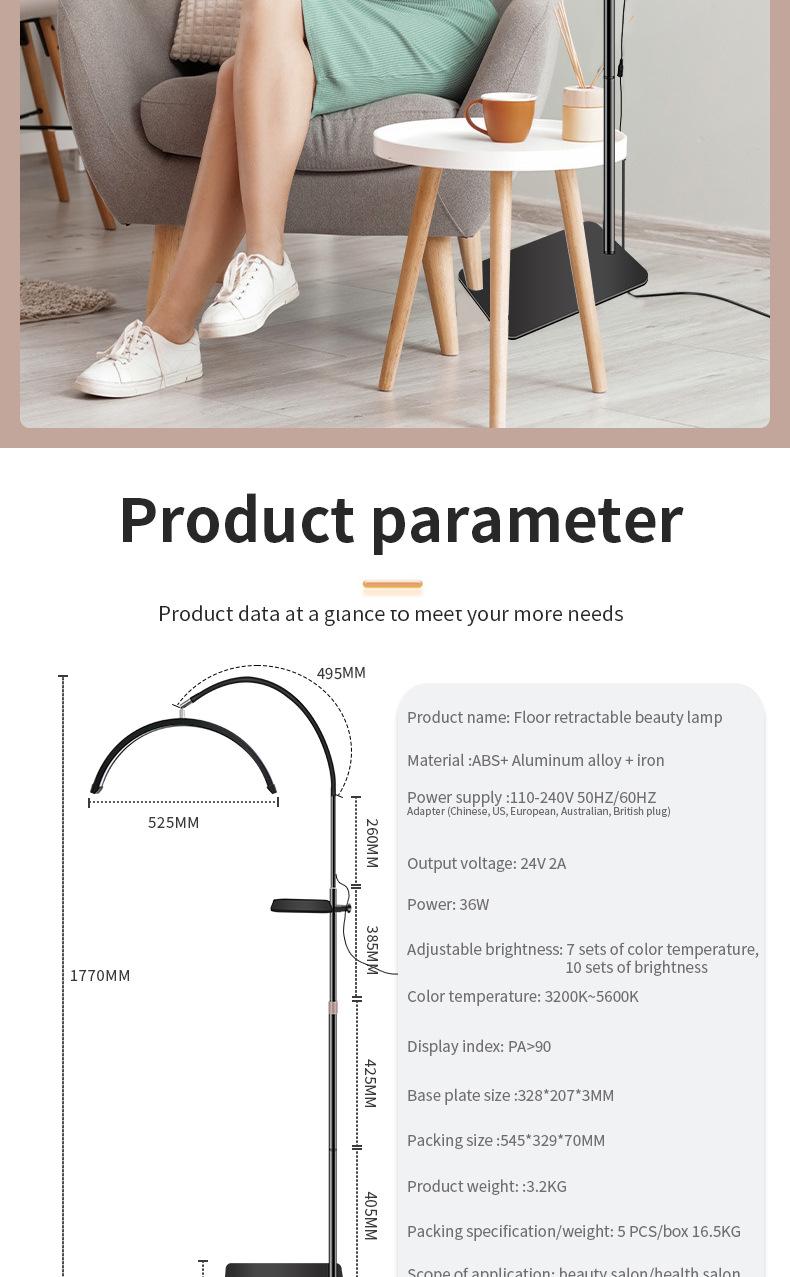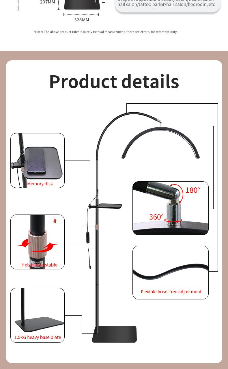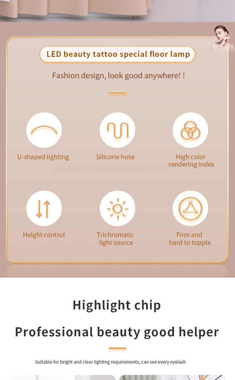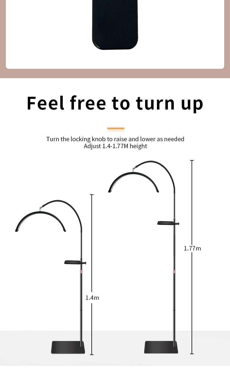 Nova Lâmpada de Beleza Meia Lua de 21 polegadas para Tatuagem, Nail Art, Tatuagem de Sobrancelha, Lâmpada para Cílios, Luz de Preenchimento de Chão com Proteção para os Olhos com Bandeja de Armazenamento