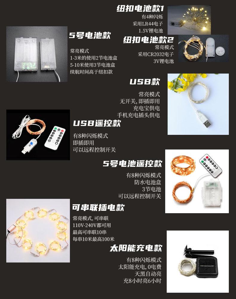 Warm white; [button battery model] 1.1m light + switch + battery; power supply, Warm white; [button battery mo...