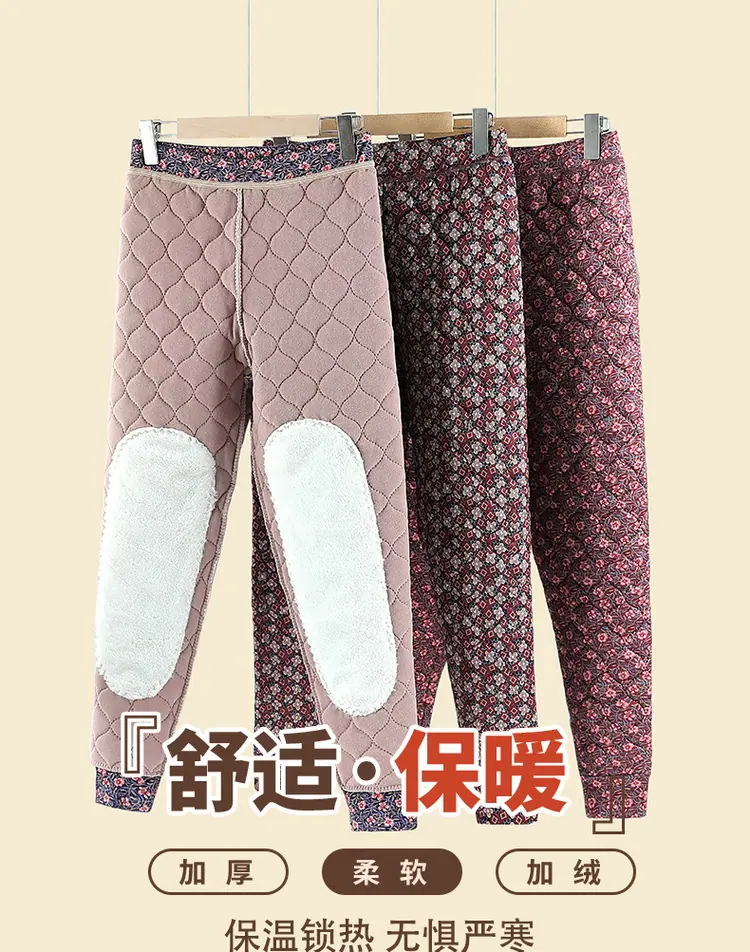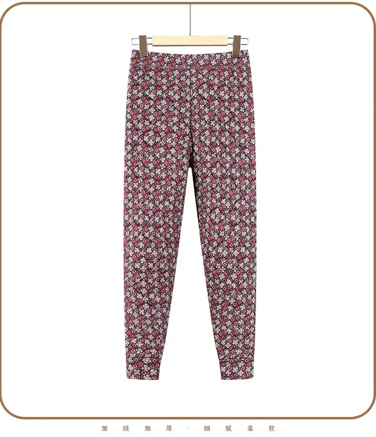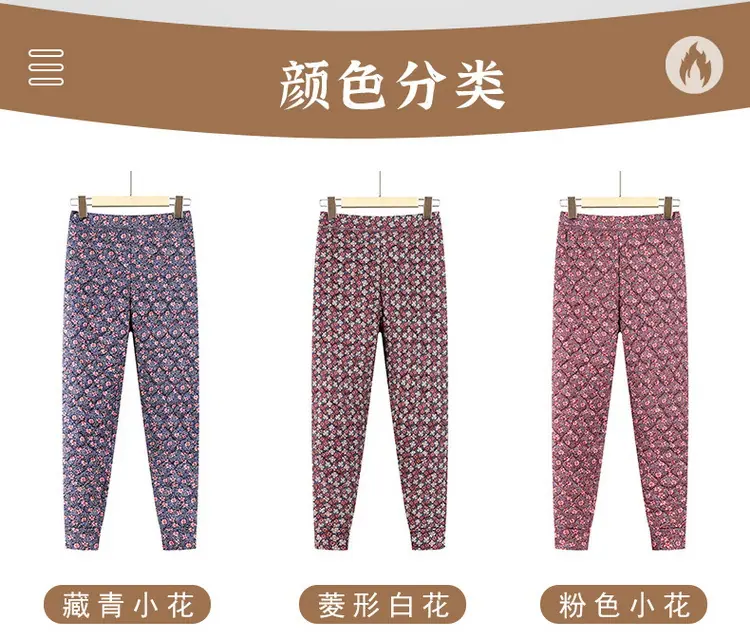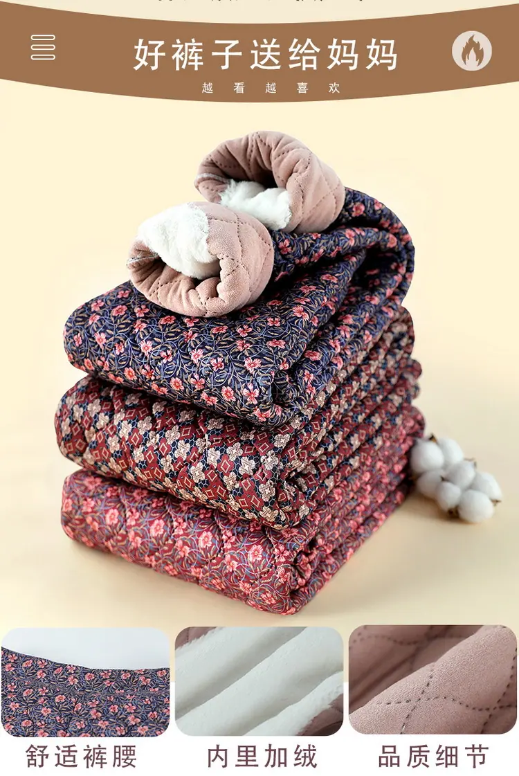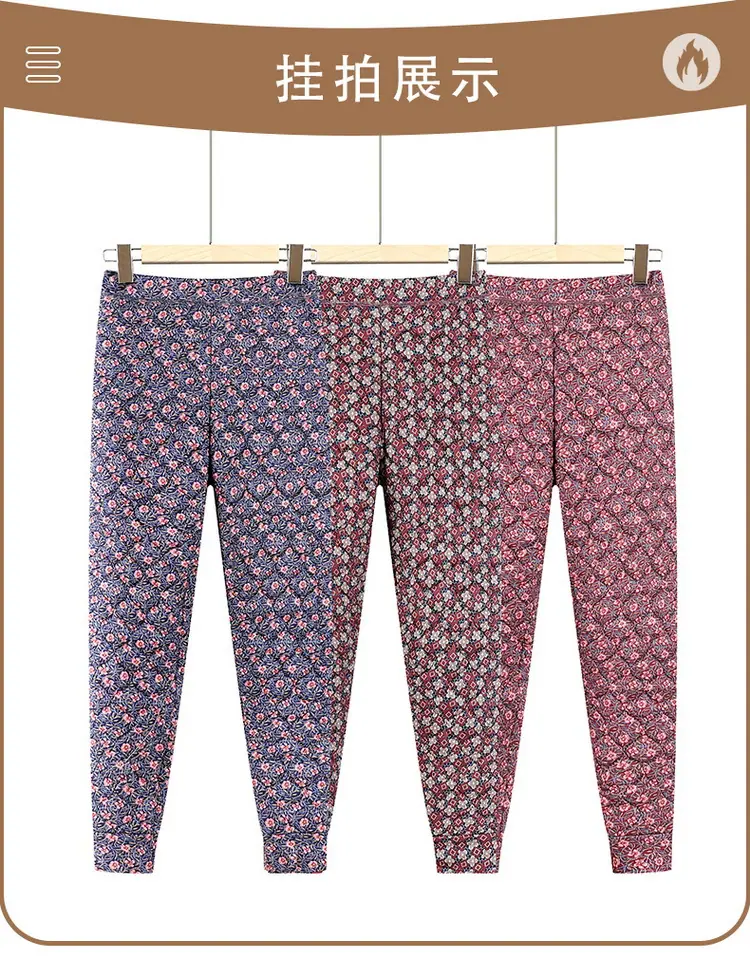 Calças de Algodão Femininas para Uso Interno, Novas Calças Quentes Finas e Leves de Inverno com Estampa Floral para Mulheres de Meia-Idade e Idosas, Calças de Algodão Elásticas de Cintura Alta para Mães