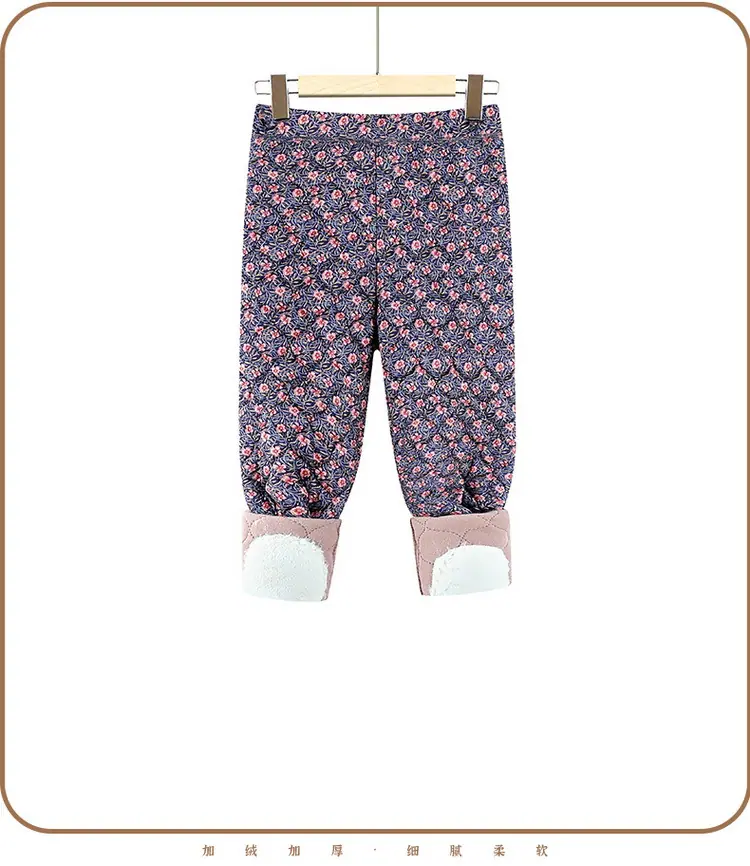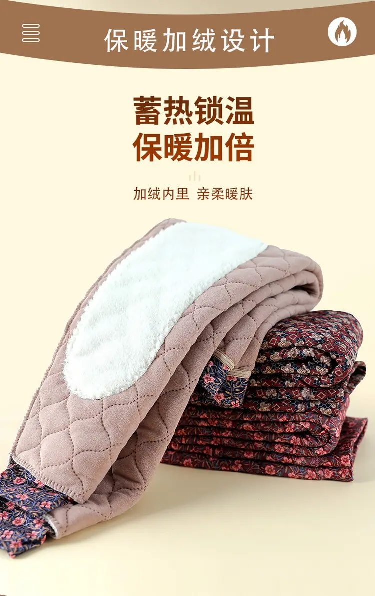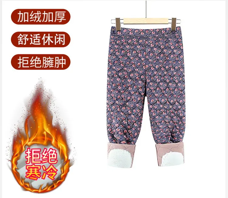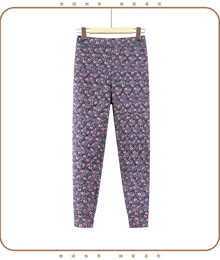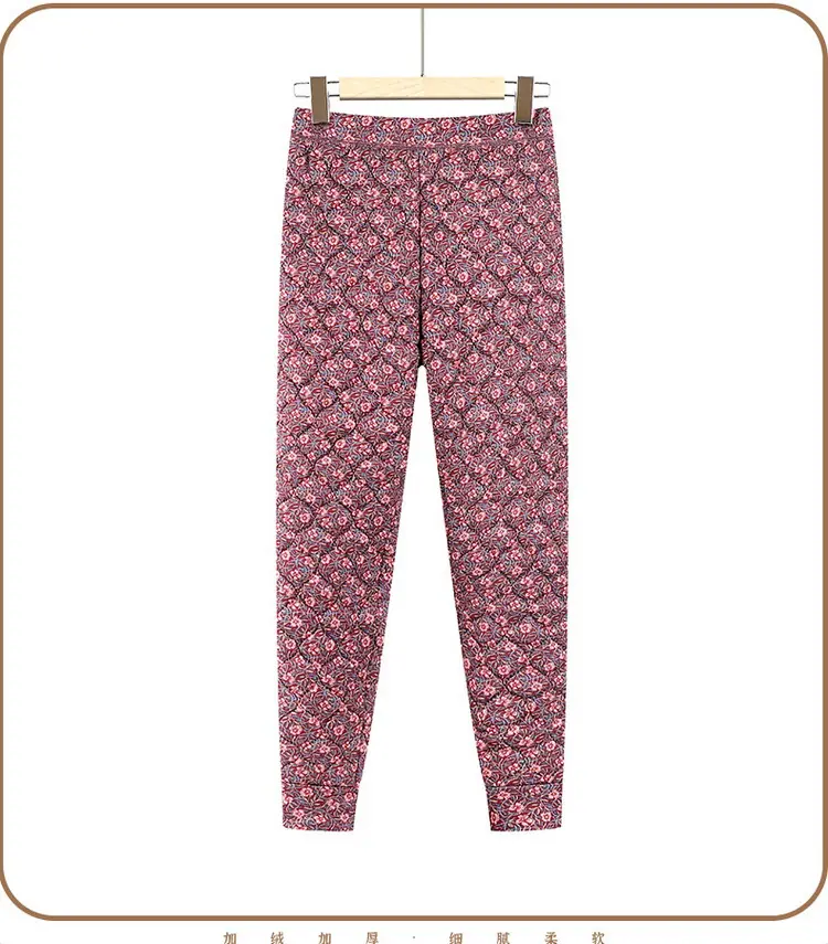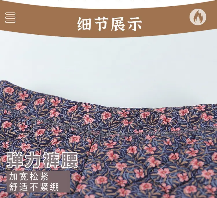 Calças de Algodão Femininas para Uso Interno, Novas Calças Quentes Finas e Leves de Inverno com Estampa Floral para Mulheres de Meia-Idade e Idosas, Calças de Algodão Elásticas de Cintura Alta para Mães