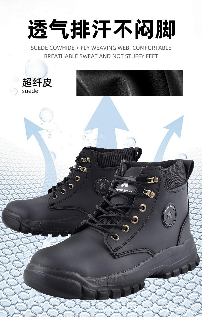 Sapatos de Proteção do Trabalho, Antiesmagamento e Antipenetração, Veludo de Inverno Cano Alto Masculino, Quentes, Confortáveis e Resistentes ao Desgaste, Sapatos de Trabalho Clássicos, Sapatos de Segurança
