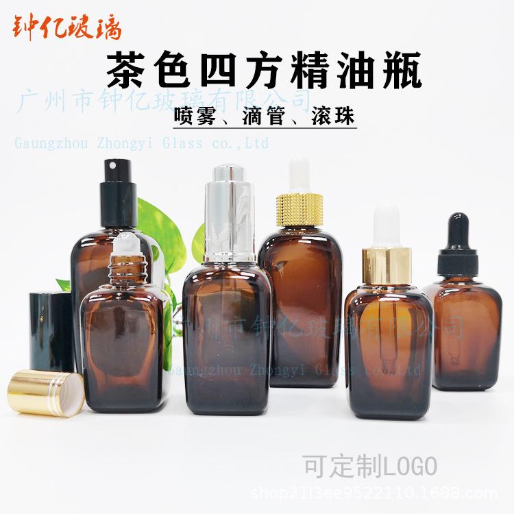 Frasco Quadrado Marrom para Óleo Essencial 10-100ml Grande Capacidade Cosmético Dispenser Conta-Gotas Frasco de Vidro Frasco de Amostra Medicinal