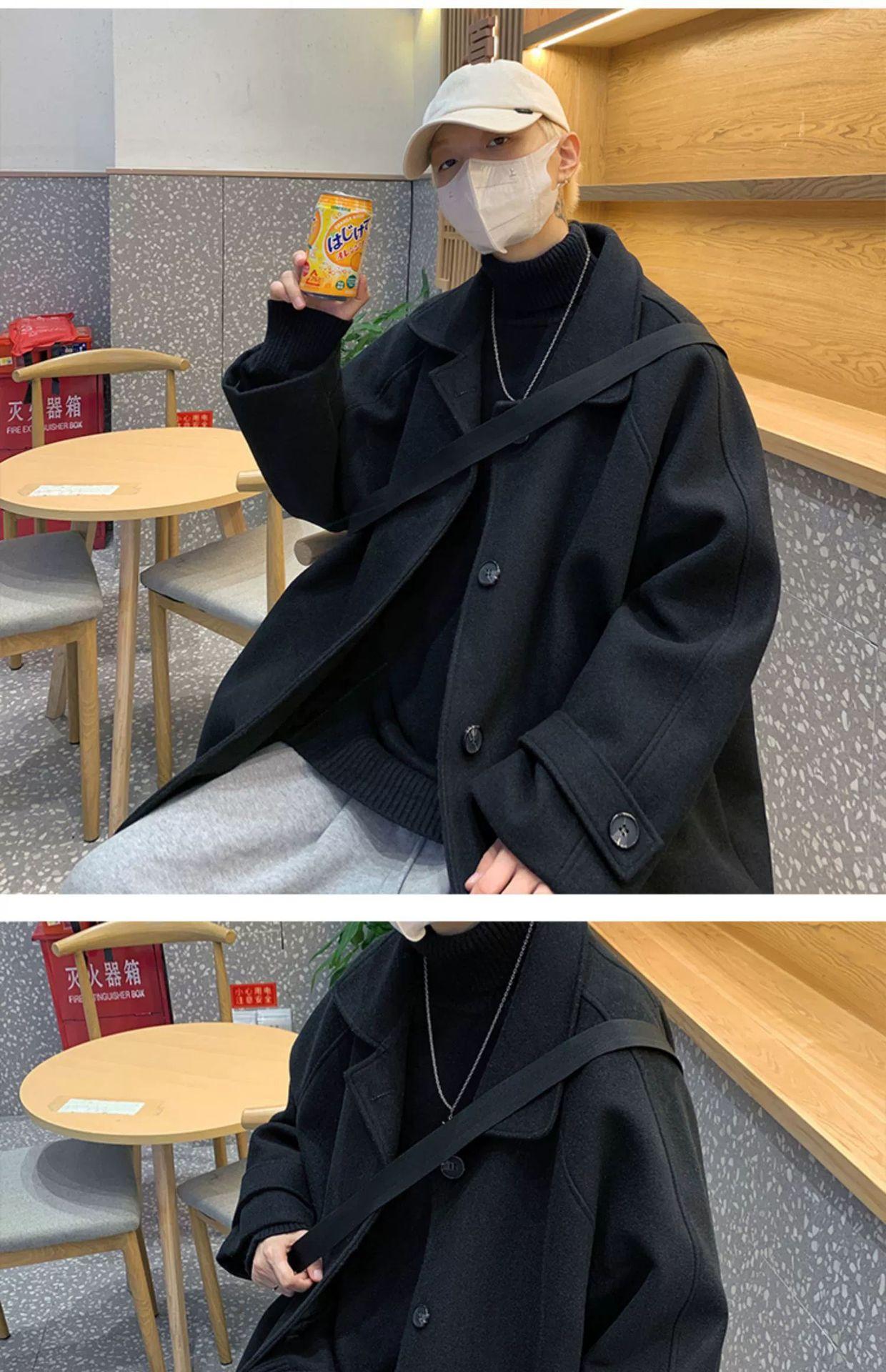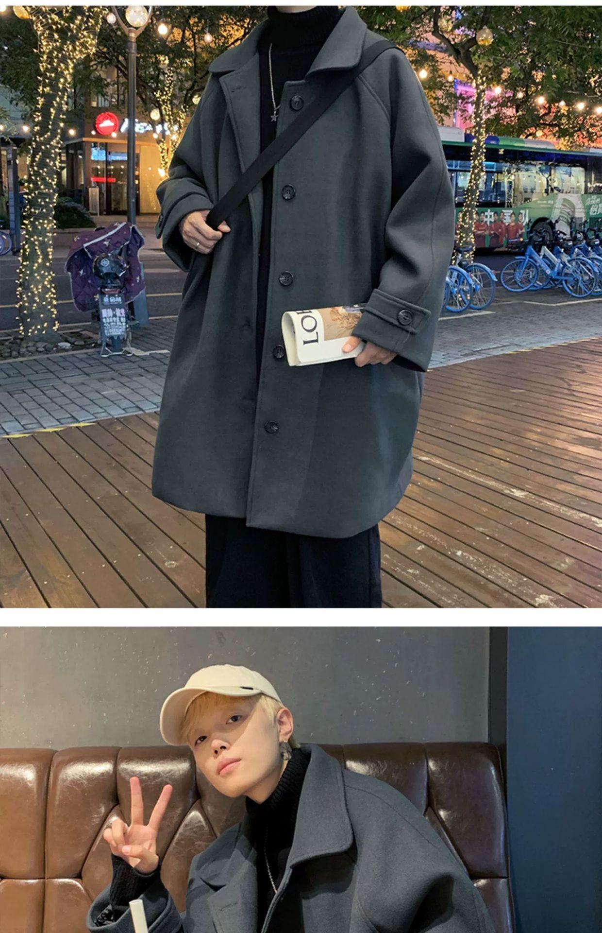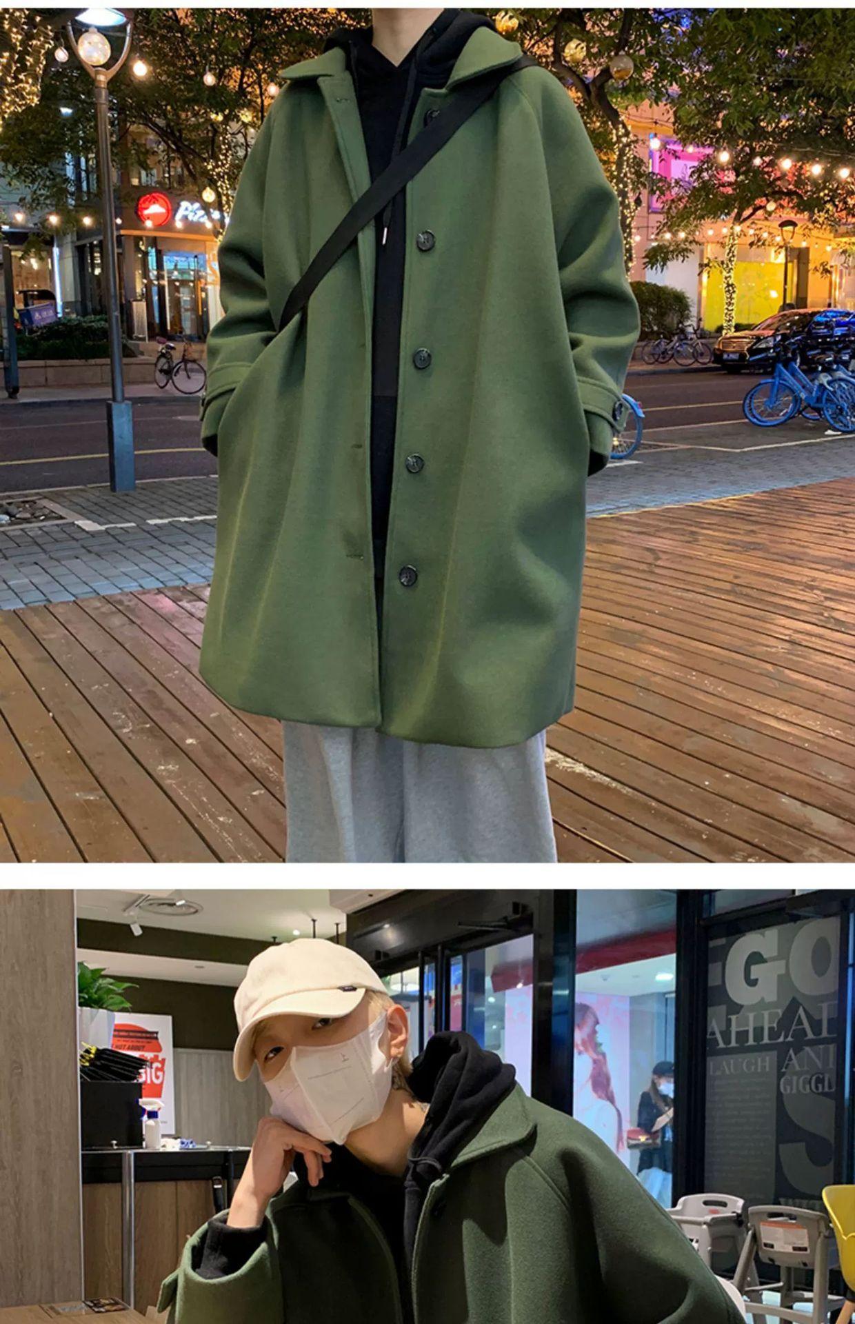 Casaco de lã masculino inverno Novo estilo coreano ins moderno cor sólida bonito casaco de lã casal jaqueta casual versátil