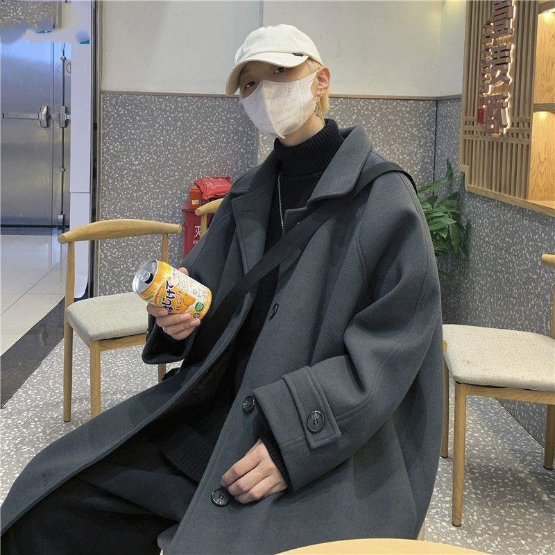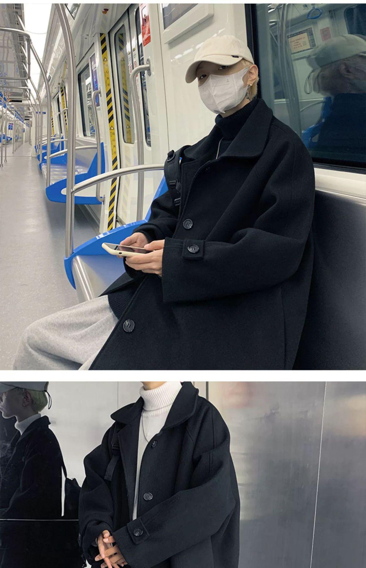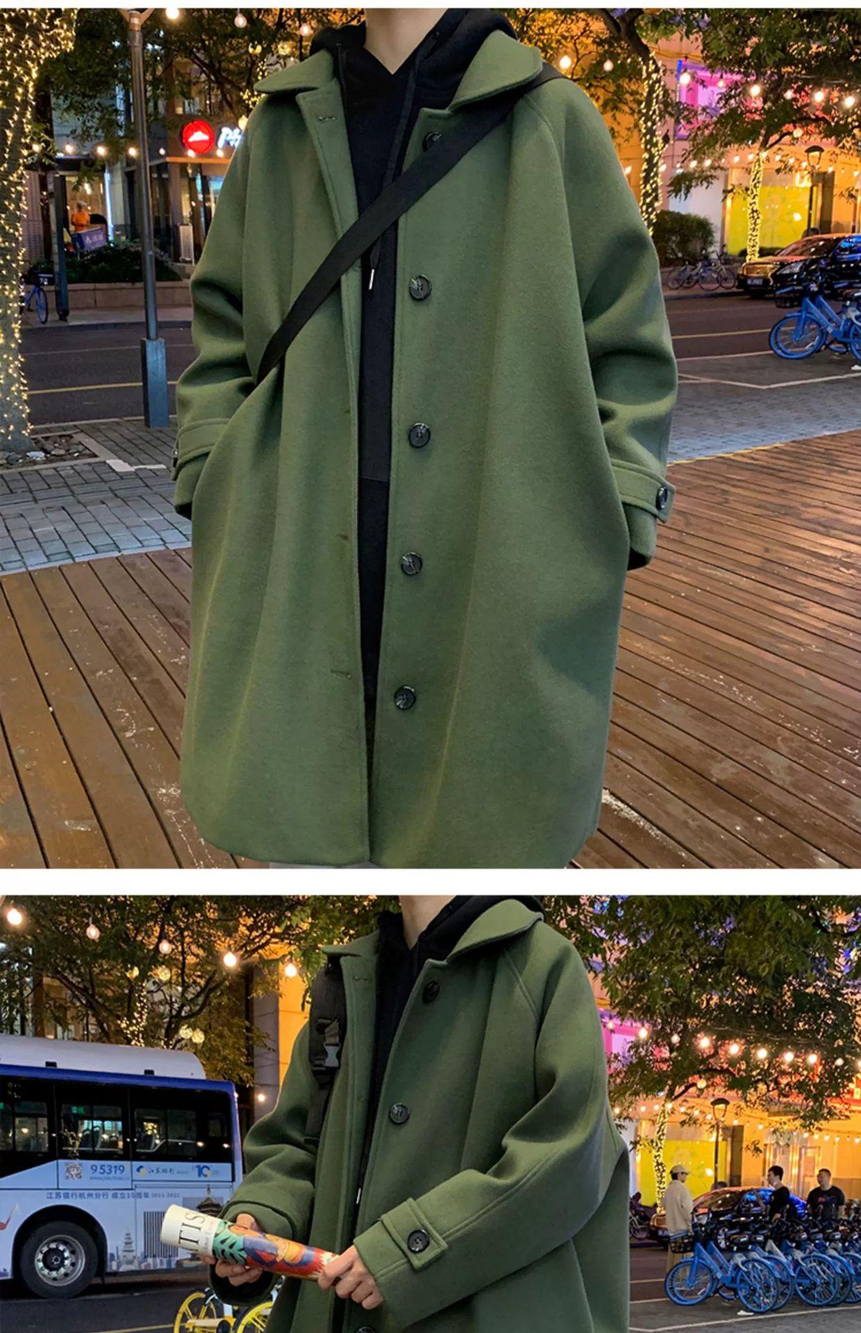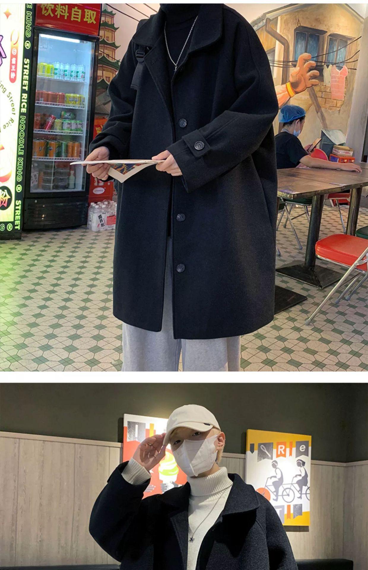 Casaco de lã masculino inverno Novo estilo coreano ins moderno cor sólida bonito casaco de lã casal jaqueta casual versátil