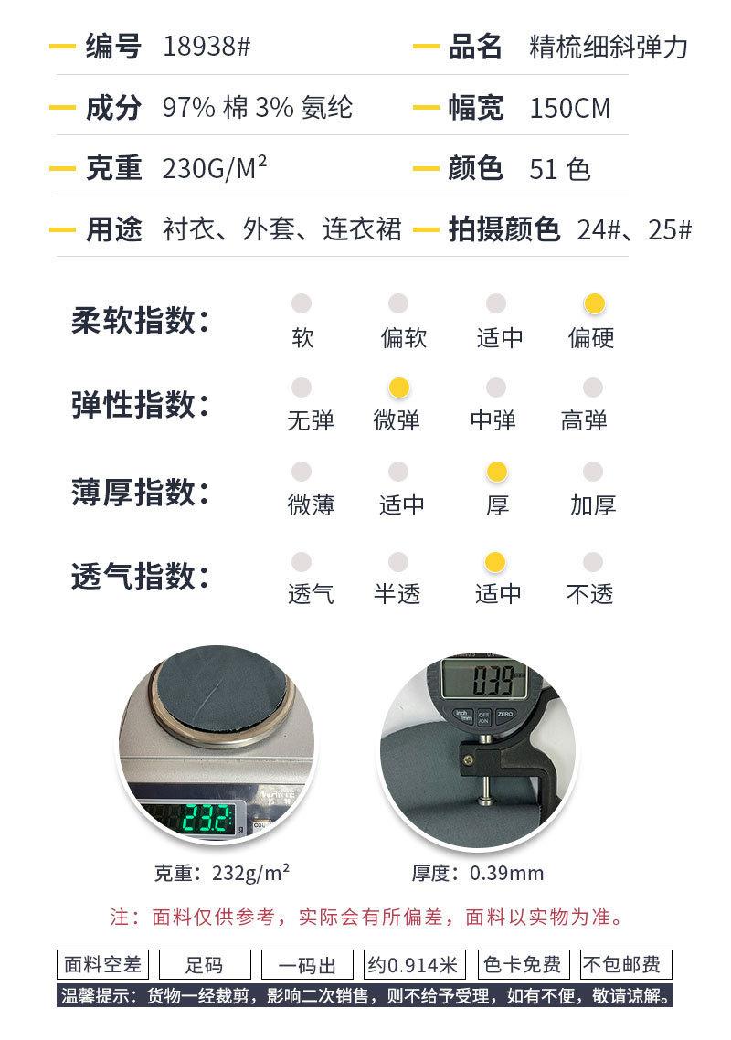 Tecido Sarja Elástico de Pontos Fios Cardados Algodão Penteado Jaqueta de Trabalho Masculina Calças Casuais Tecido Atacado