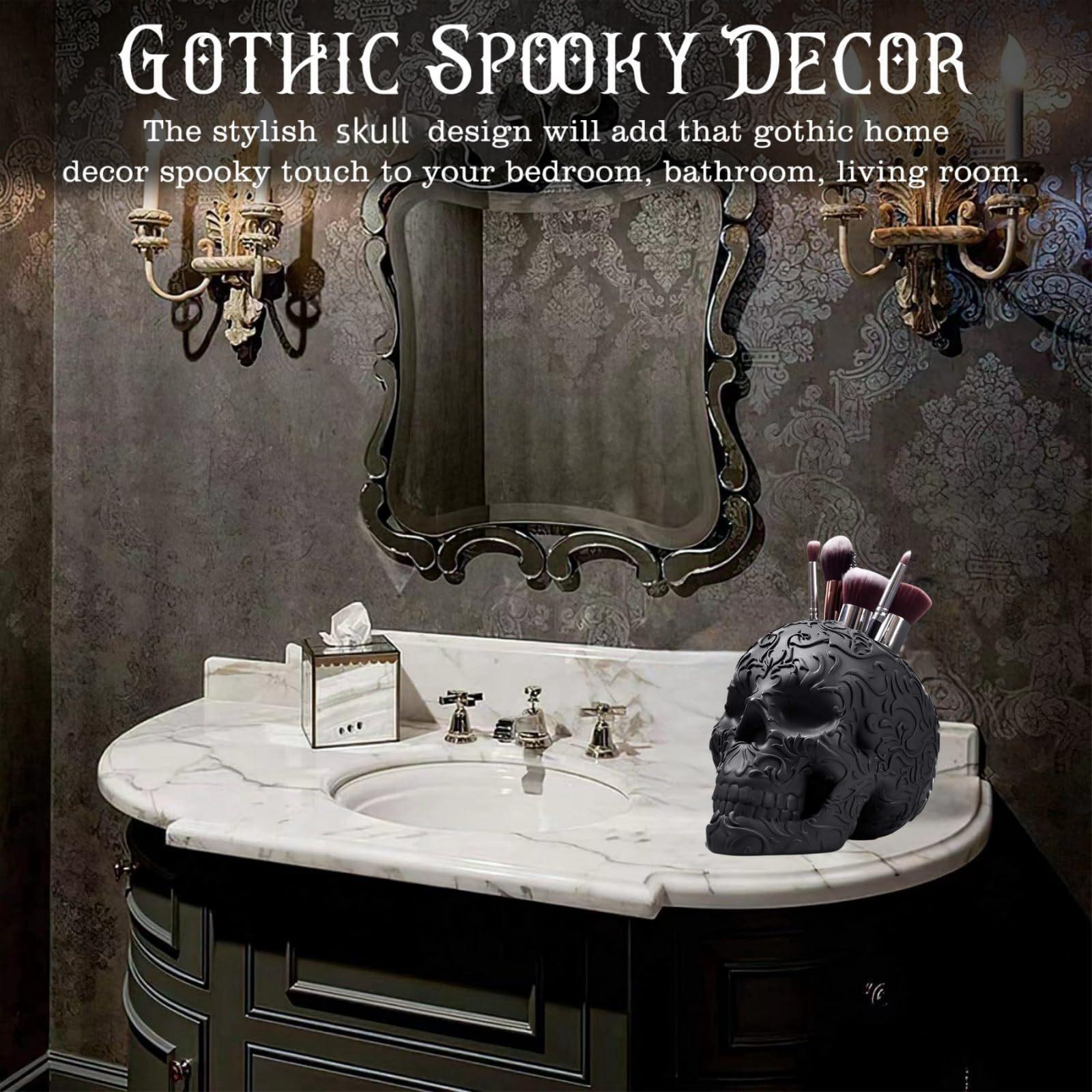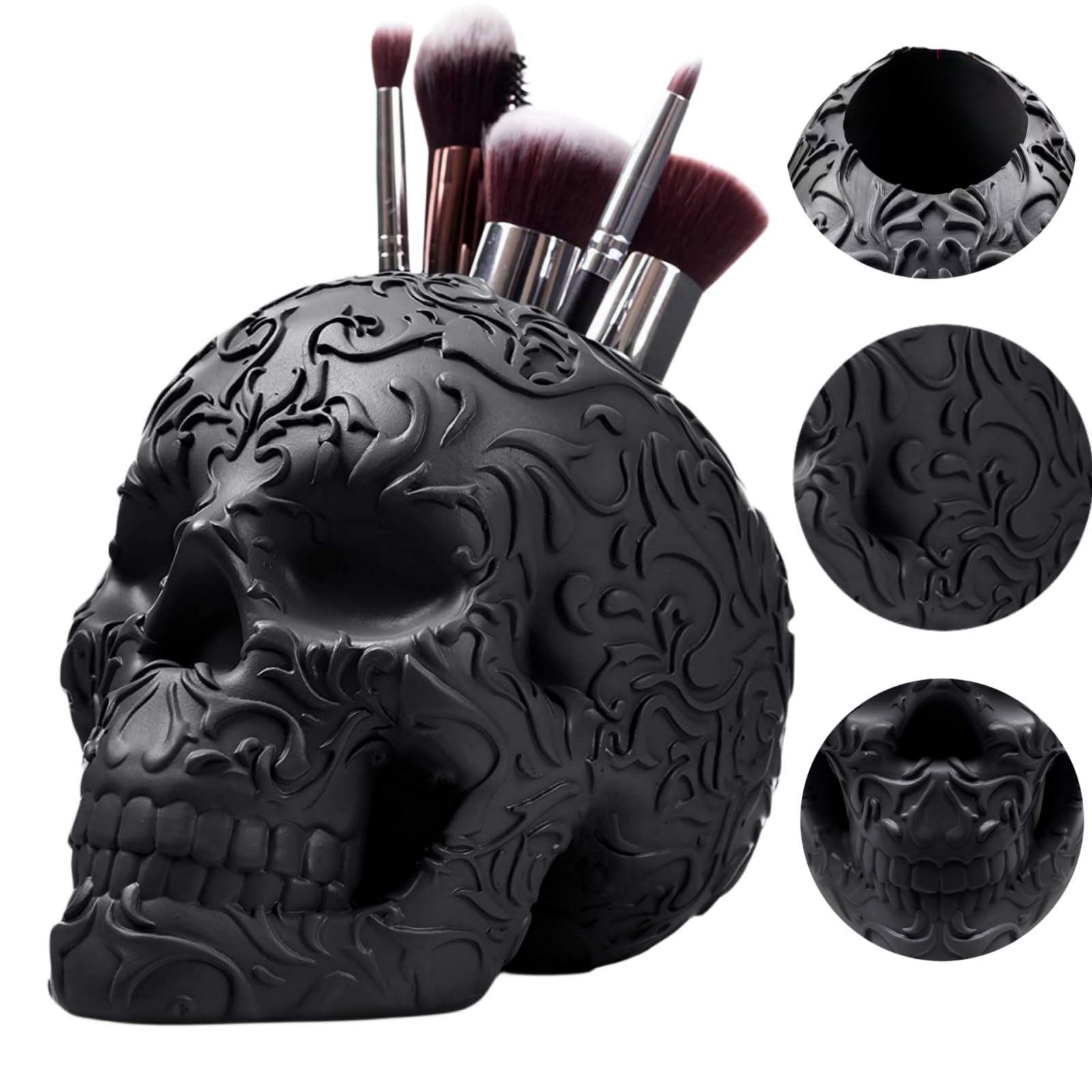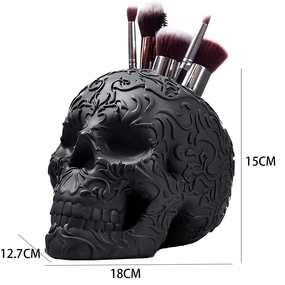 Skull makeup brush holder