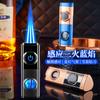 Isqueiro de indução com três chamas azuis, isqueiro inflável especial para charutos, acendedor portátil de alta potência