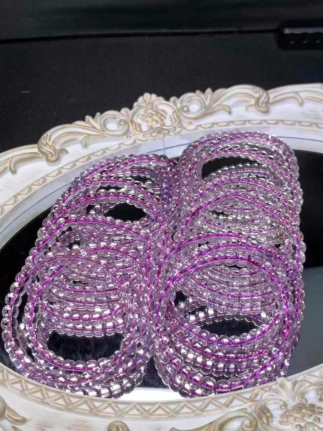 Pulseira de Contas de Ametista Natural Cristal Transparente Pulseira de Cristal Pulseira de Contas de Ametista