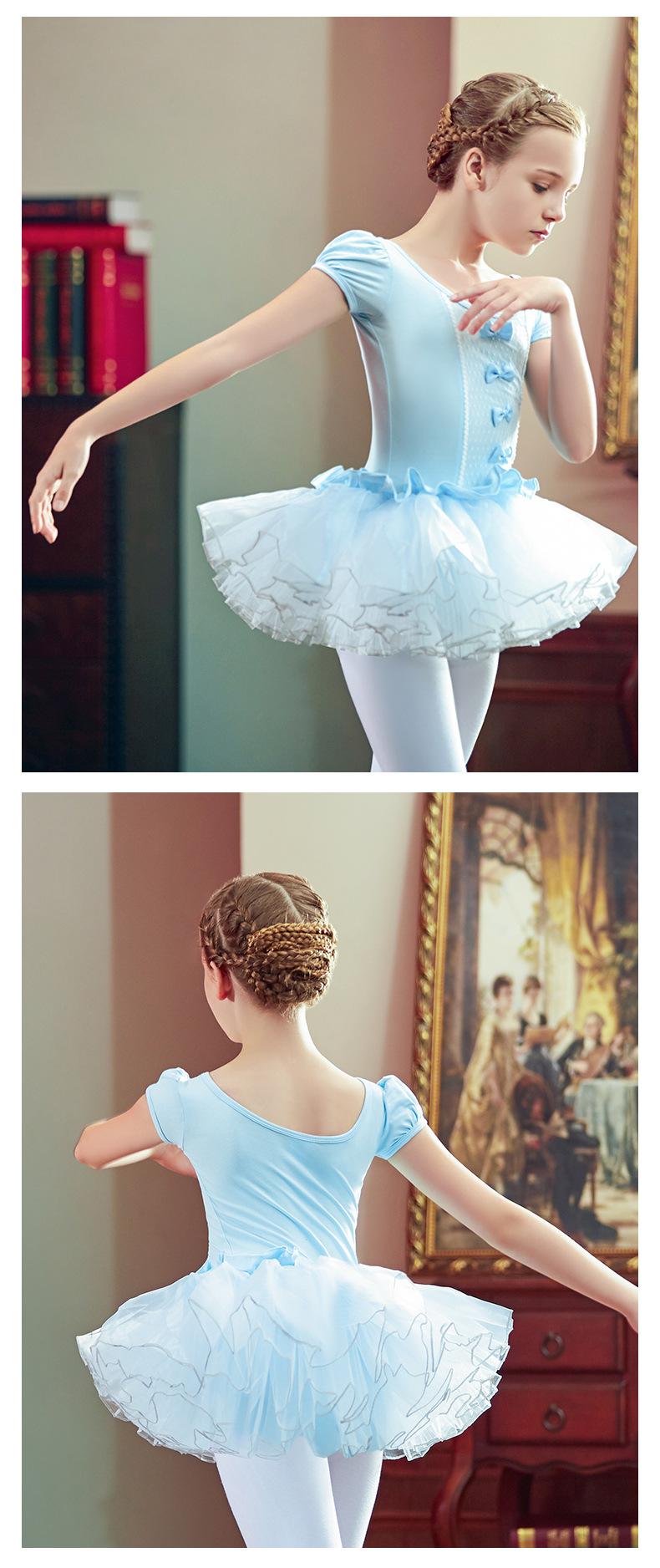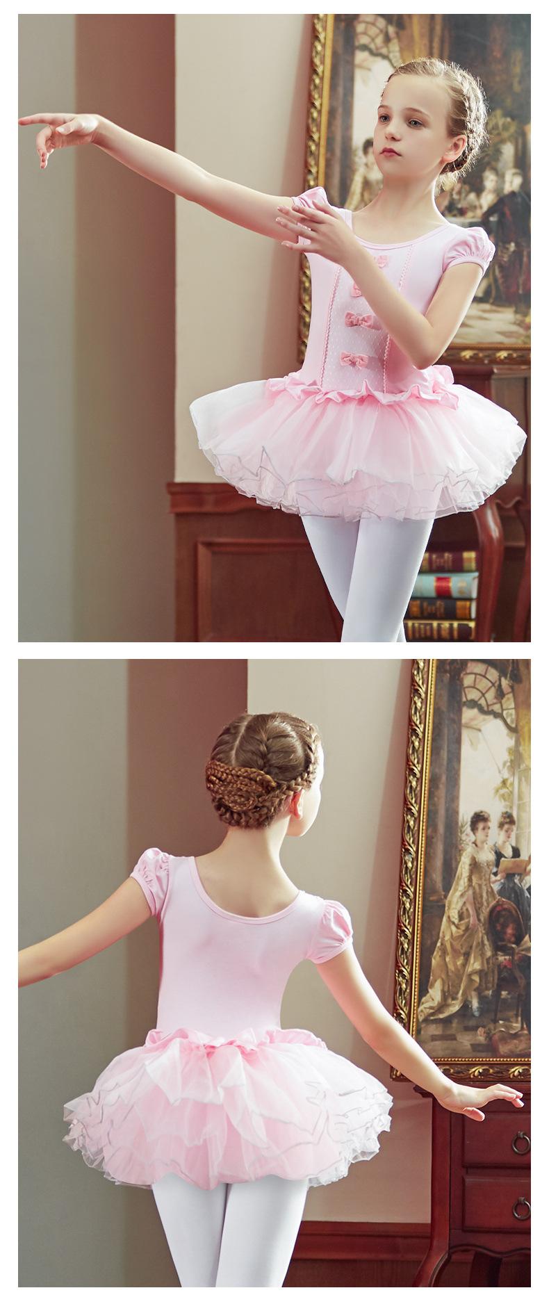 Roupas de dança popular de comércio exterior para crianças, saia de dança de manga curta para meninas para primavera e verão, saia de balé para meninas, roupas de prática para crianças pequenas