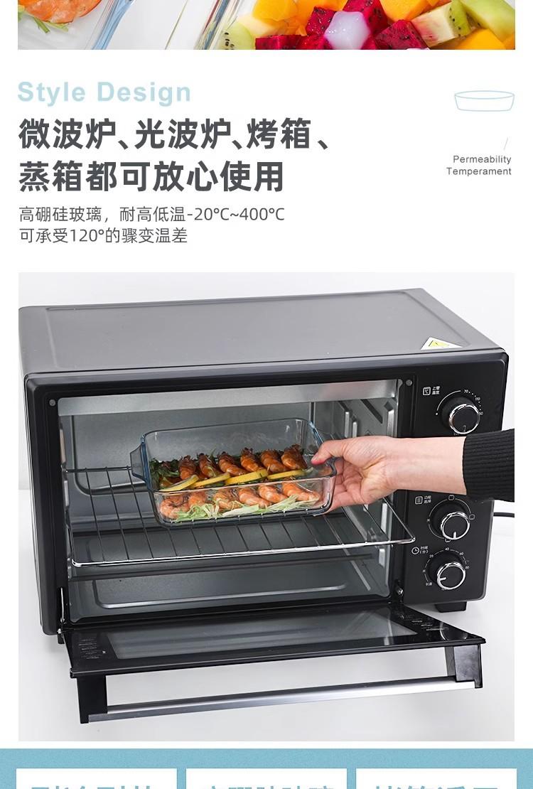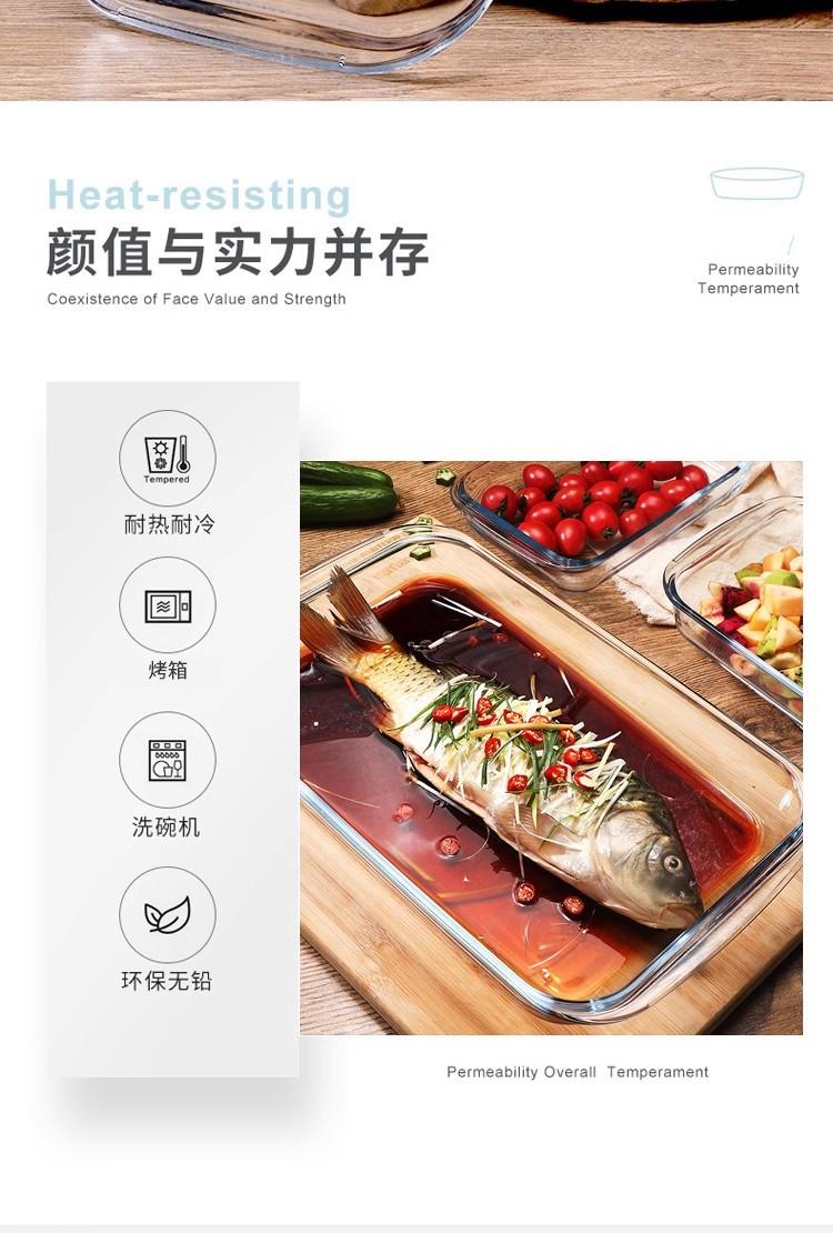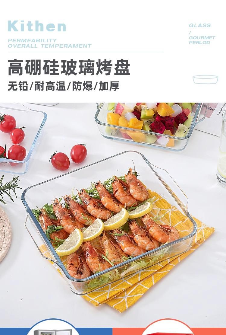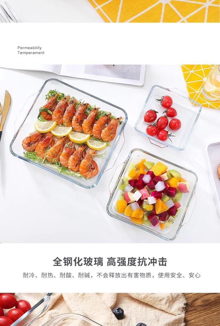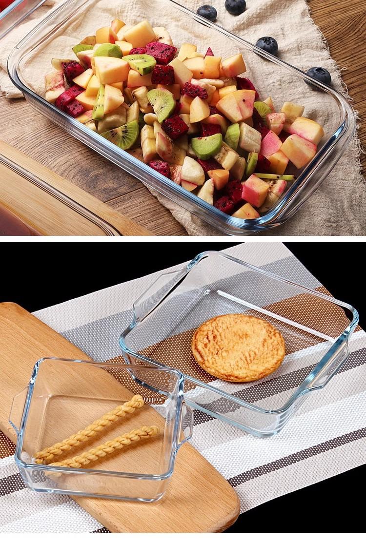 Assadeira quadrada binaural resistente ao calor de vidro de alto borosilicato Assadeira de vidro Assadeira com alça Pode entrar no forno Assadeira de peixe