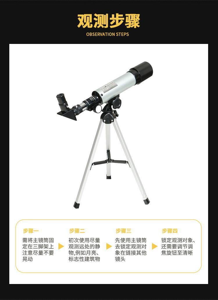F36050 telescópio astronômico infantil monocular para observação de pássaros e estrelas, para viagens ao ar livre, para estudantes