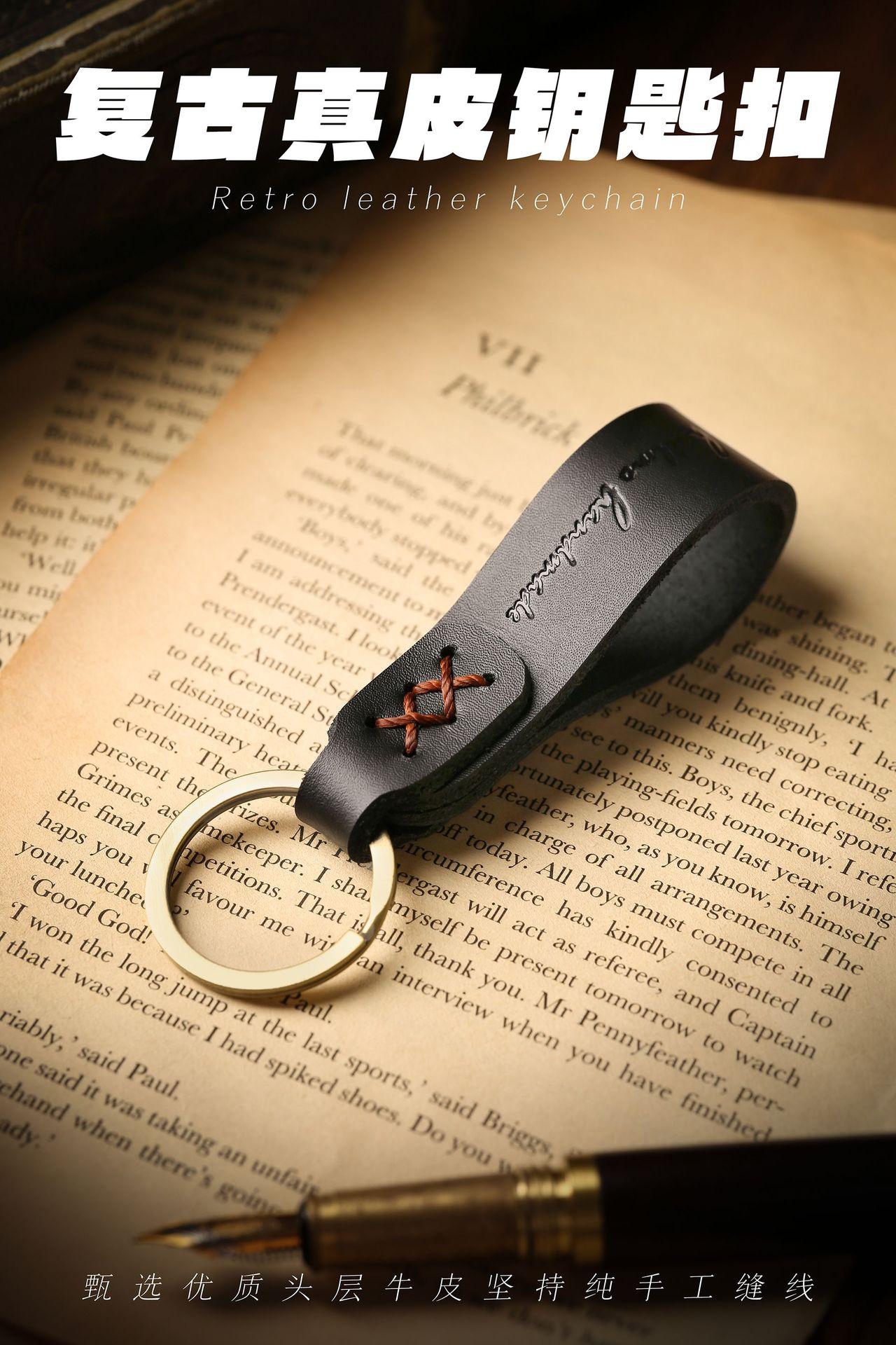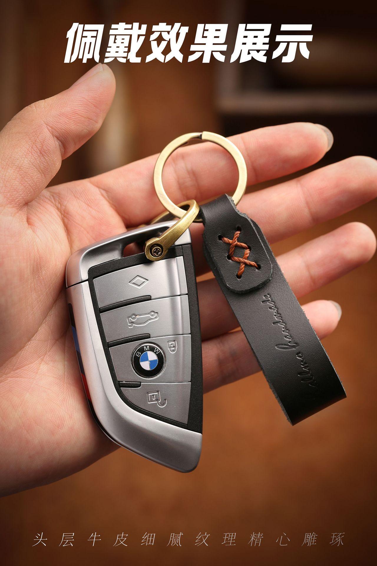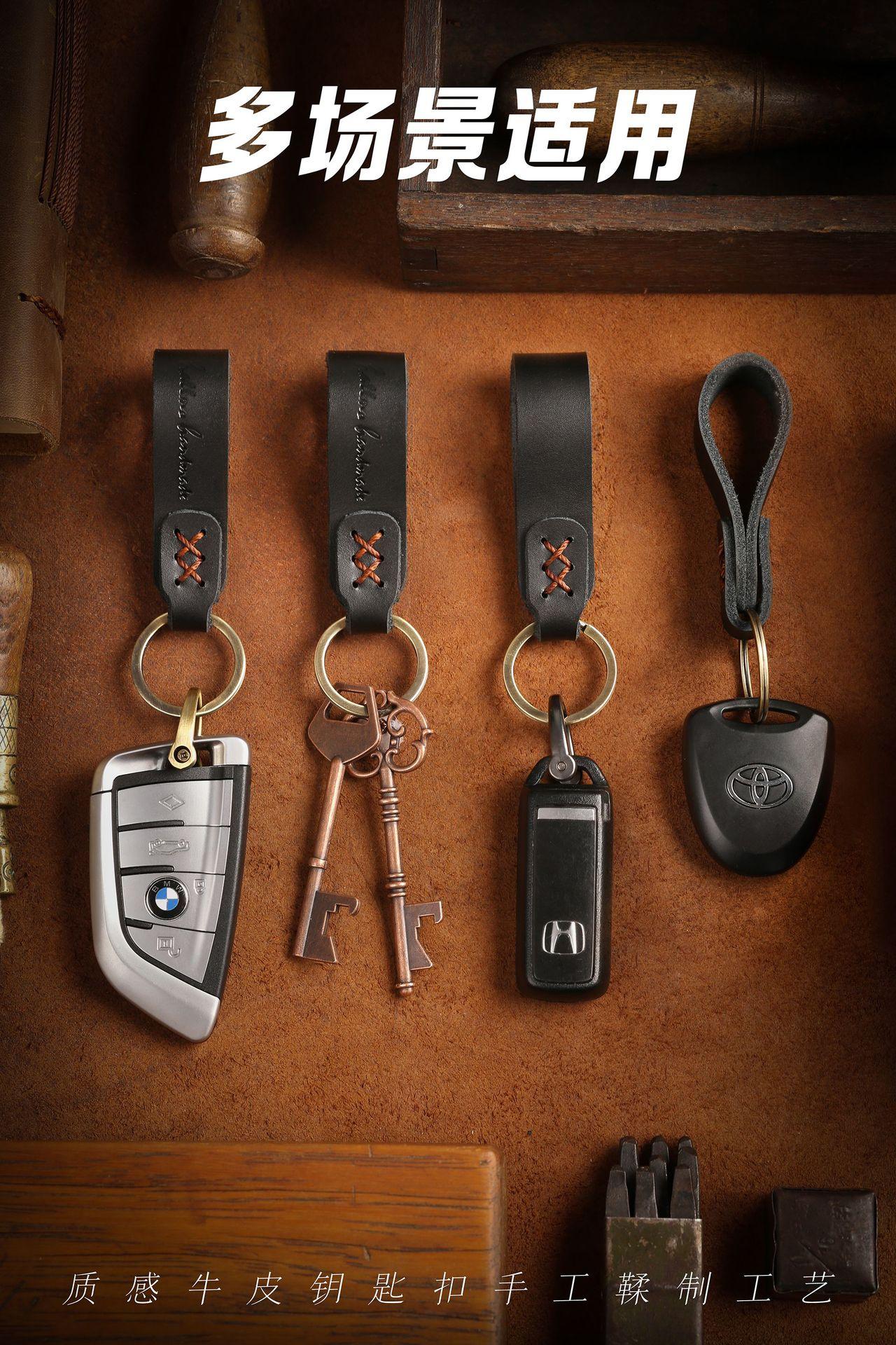 Camada Superior Couro de Vaca Chaveiro de Carro Cordão de Chave de Couro de Alta Qualidade Chaveiro de Carro Pendurado na Cintura Puro Feito à Mão Espessado Criativo