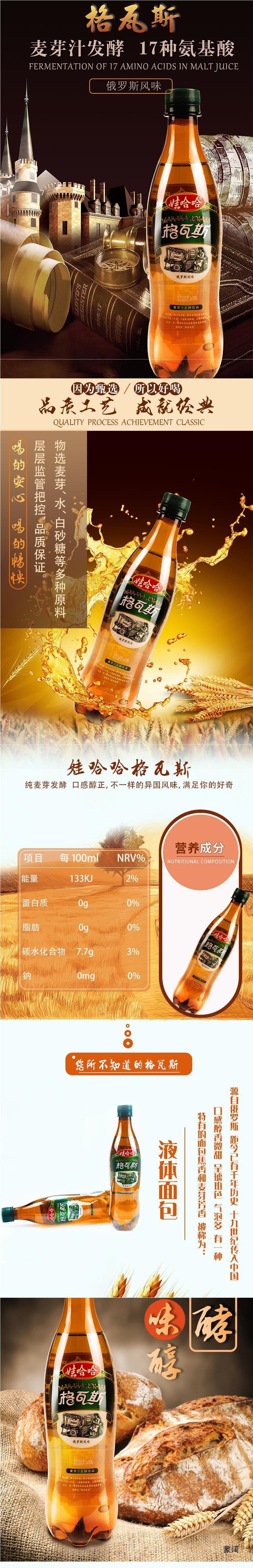 Bebida Kvass Wahaha 600ml 24 Garrafas Caixa Completa Sabor Russo 330ml Pão Líquido Extrato de Malte
