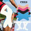 Joelheira elástica pré-cortada com suporte fixo, bandagem esportiva antifricção e efeito muscular.