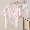 Pijama feminino verão 2024, novo shorts de manga curta, fofo, gola redonda, desenho animado, imitação de algodão, roupa para casa, terno