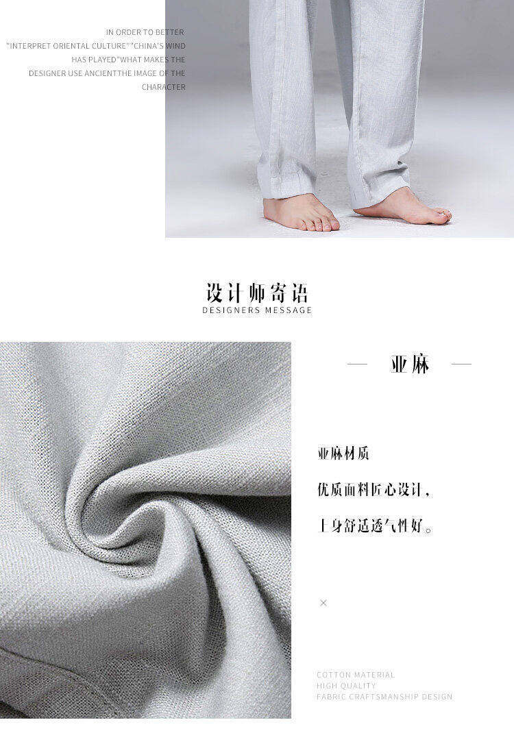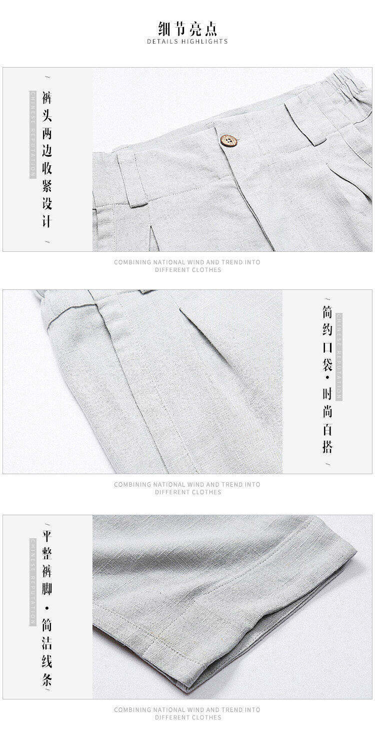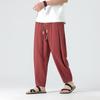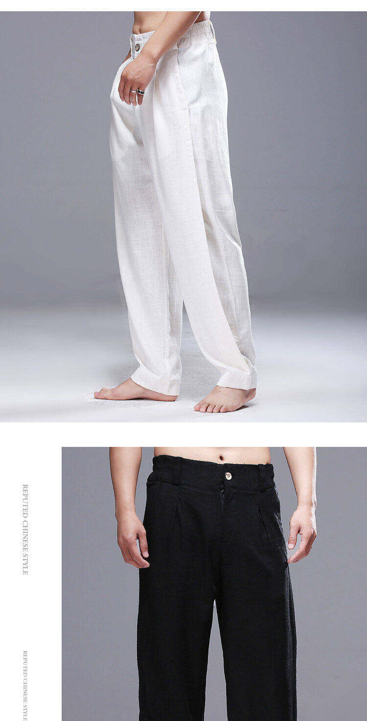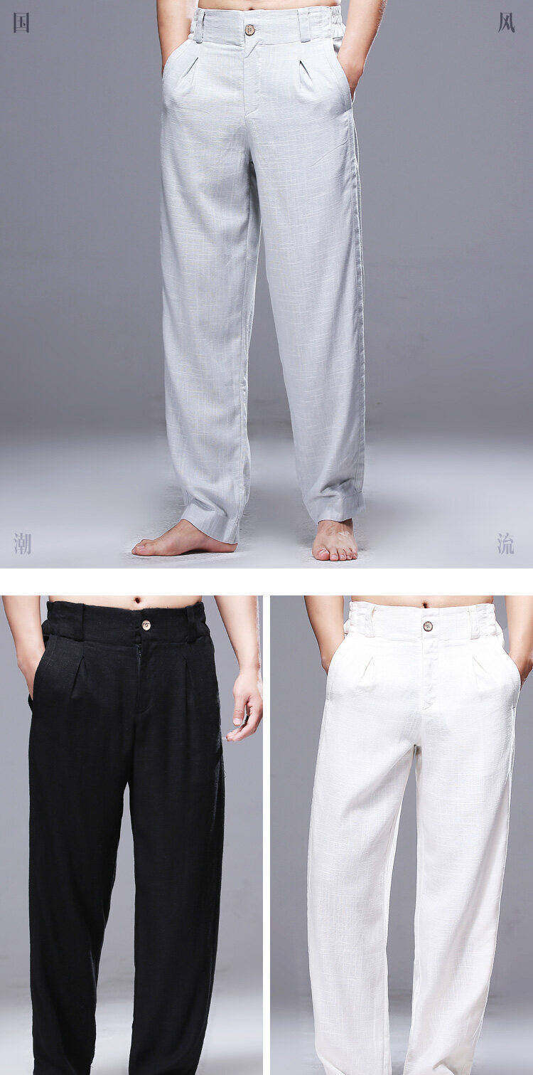 2025 Verão Novo Estilo Chinês Calças Casuais Masculinas Soltas Plus Size Pernas Largas Calças Compridas Modernas Algodão e Linho Calças Hallen Masculinas