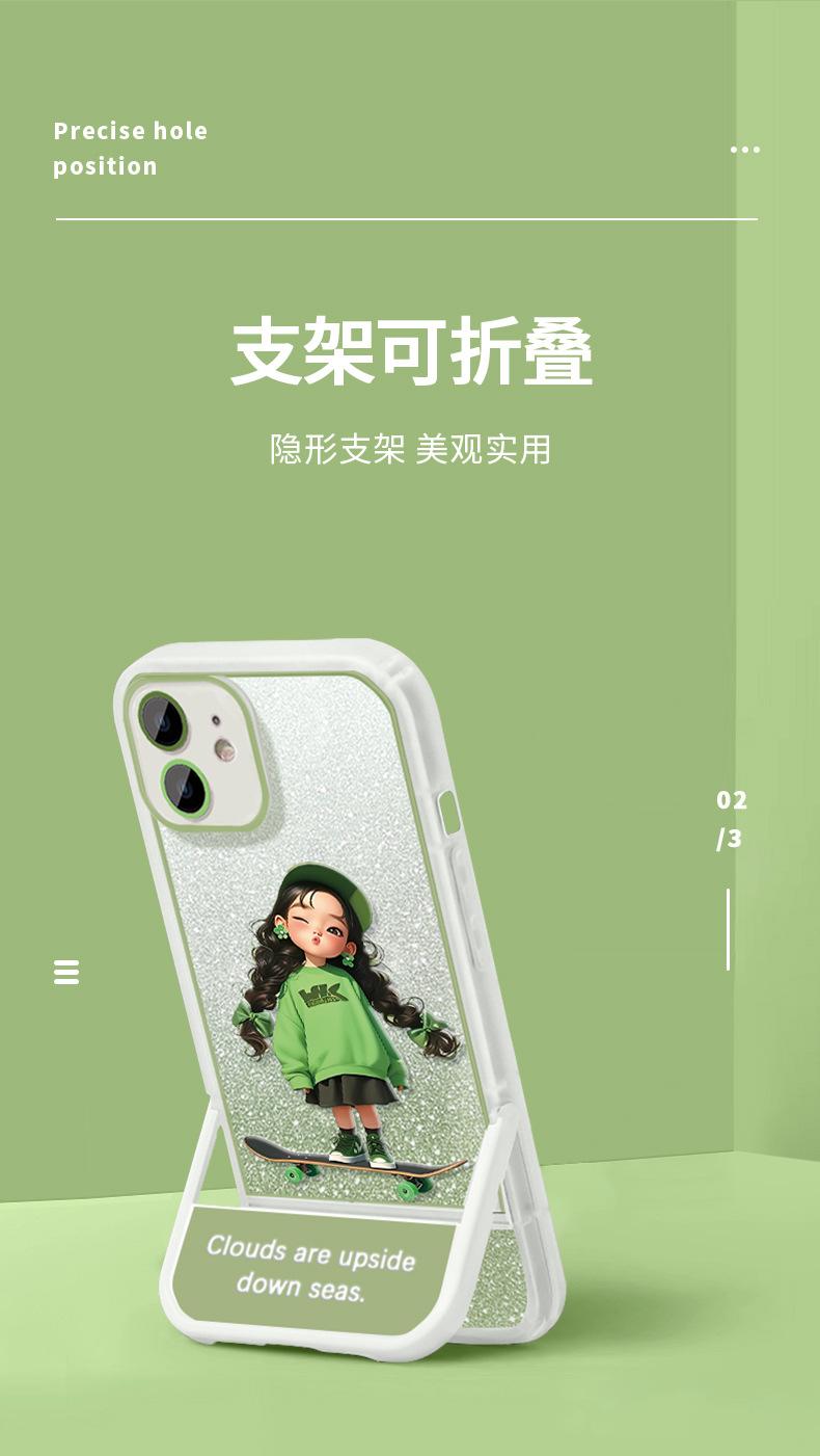 Invisible bracket-transparent white-skateboard girl+green gradient baby's breath