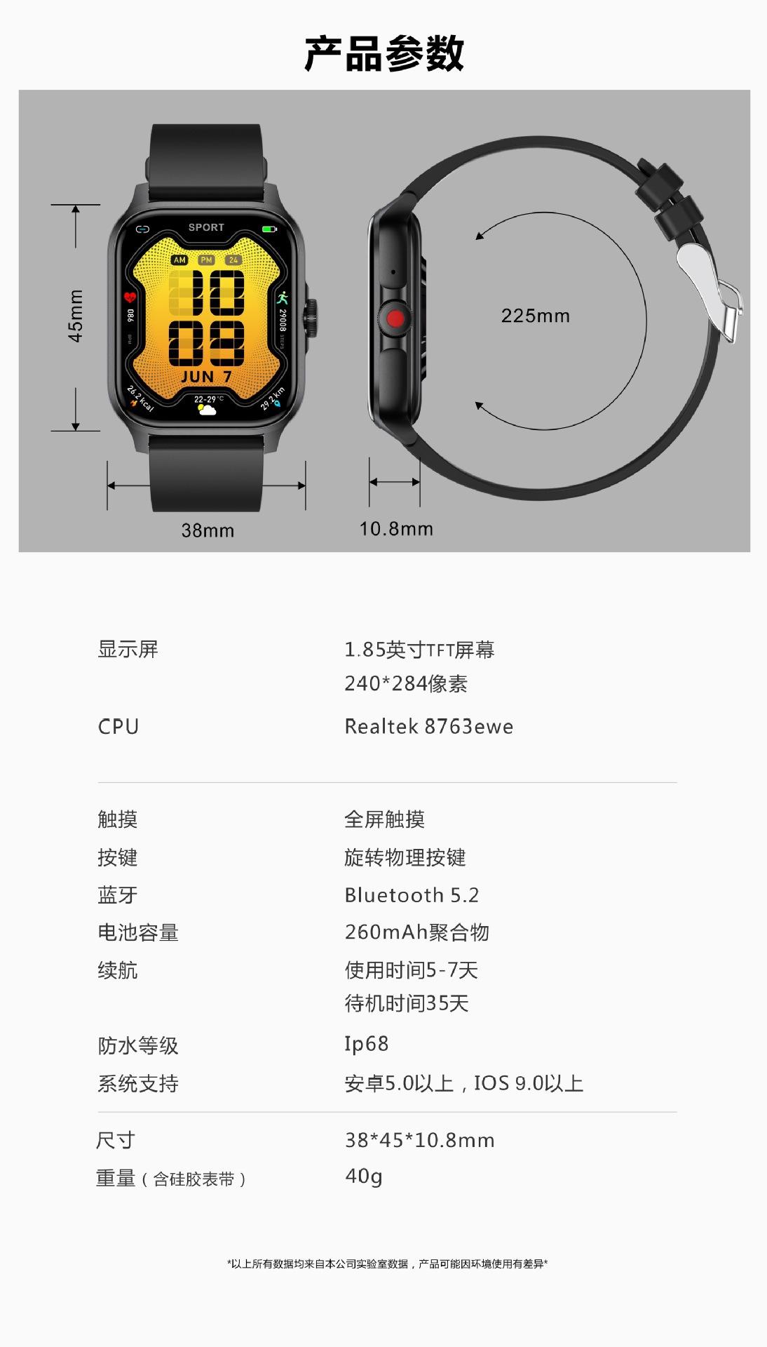 Waterproof, Take photos, Step counting, Heart rate monitoring, Blood pressure measurement, Social entertainmen...