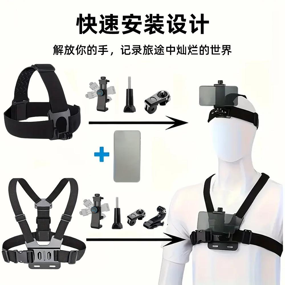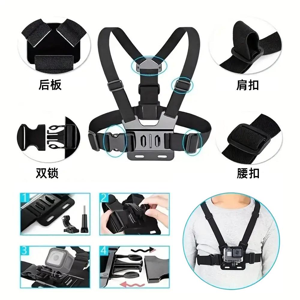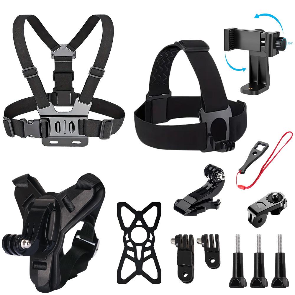 Adequado para acessórios GoPro 13 em 1, capacete de equitação, suporte de queixo, faixa de peito, faixa de cabeça, clipe para celular