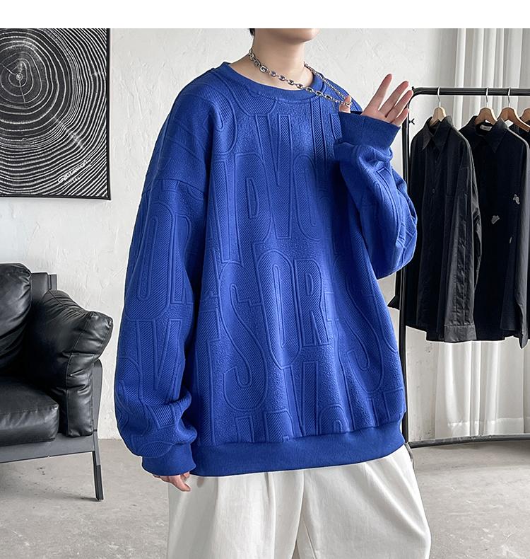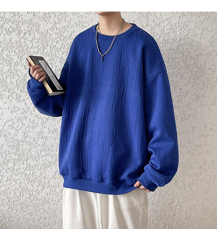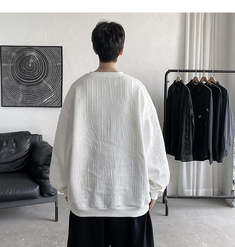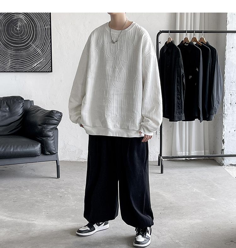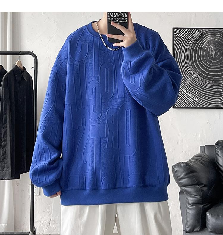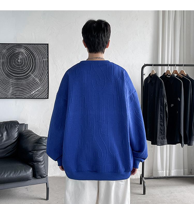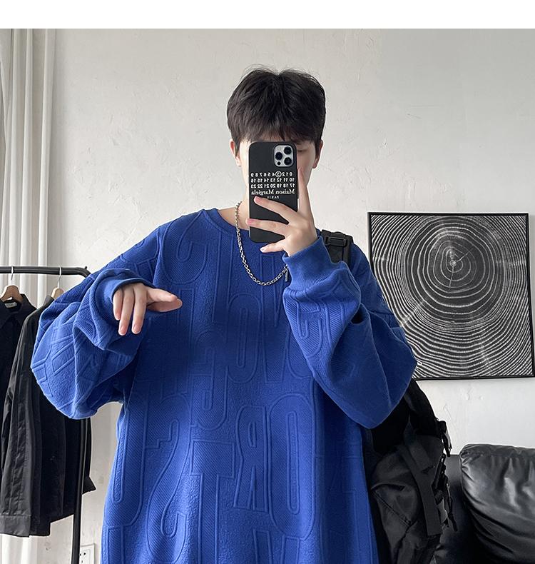Moletons masculinos de waffle americano pesados para primavera e outono, gola redonda, soltos, plus size, roupas internas para casais, manga comprida