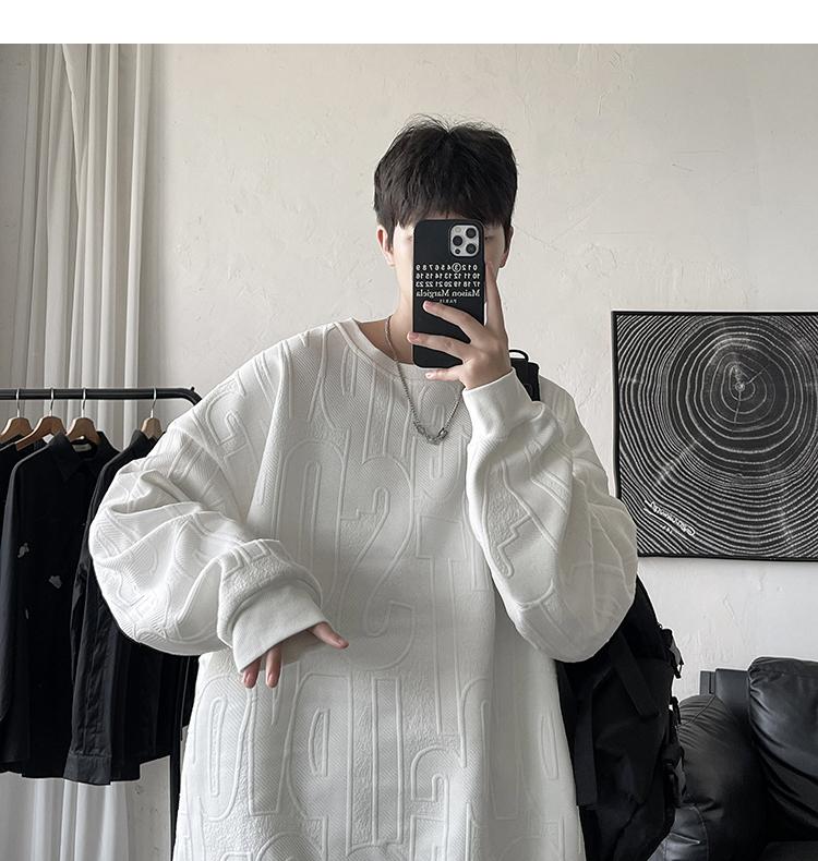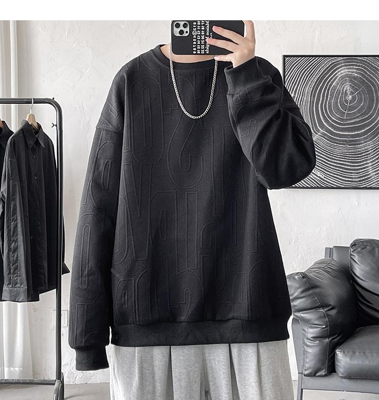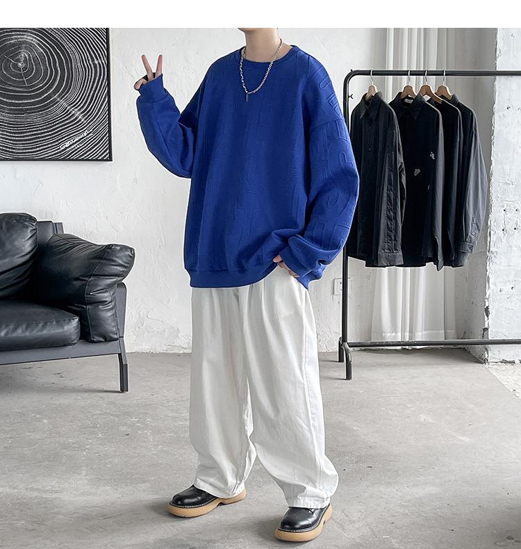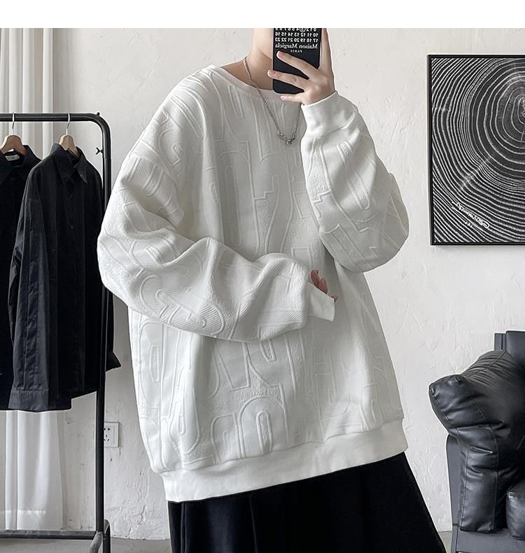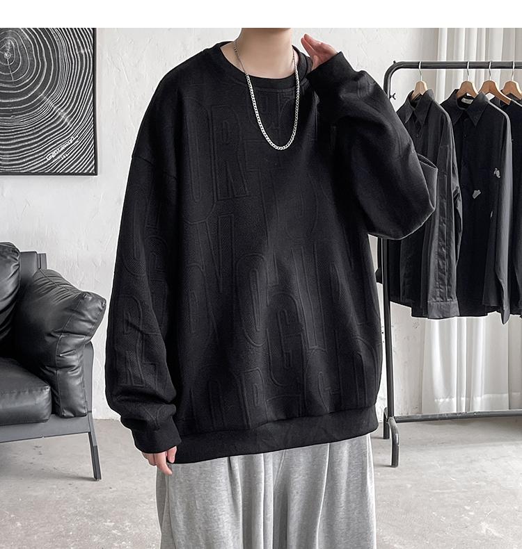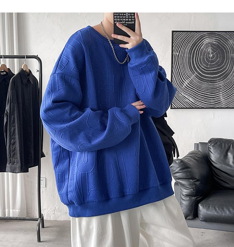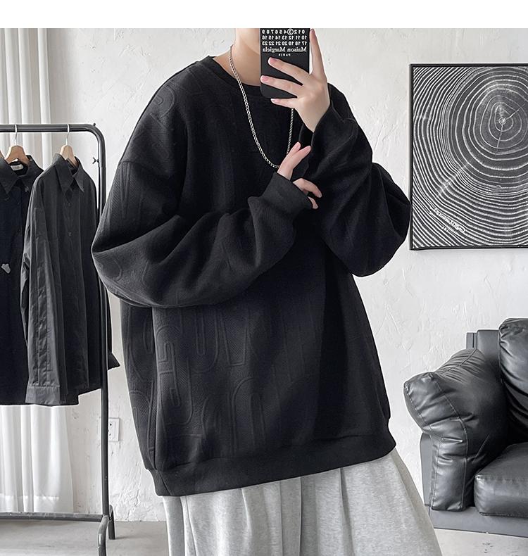 Moletons masculinos de waffle americano pesados para primavera e outono, gola redonda, soltos, plus size, roupas internas para casais, manga comprida