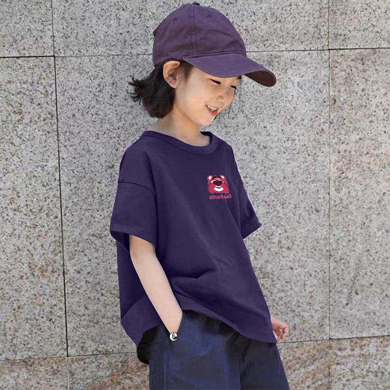 Short-sleeved t-purple-face-covering strawberry bear with small front and side