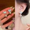 Brincos de pérola borboleta azul degradê, novo design de nicho leve, personalidade requintada, temperamento, brincos combinando para mulheres
