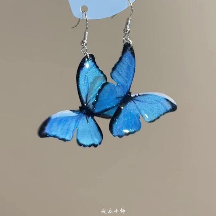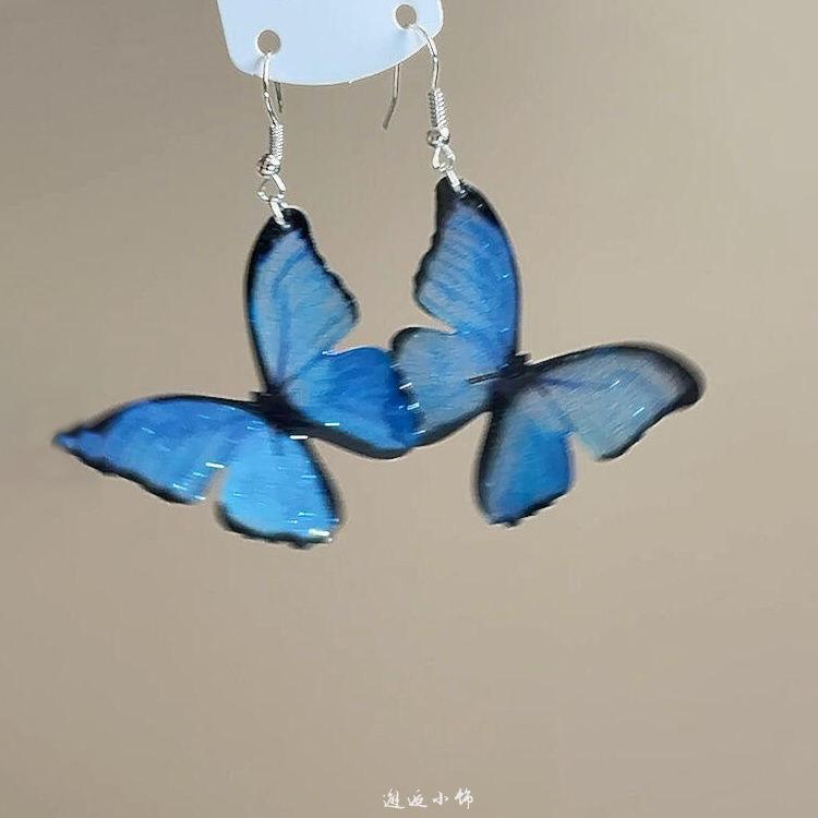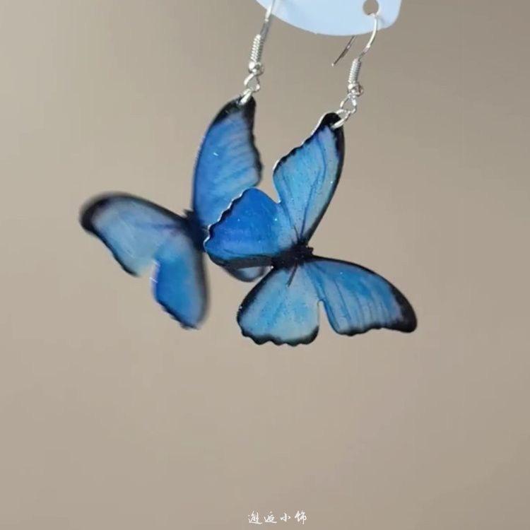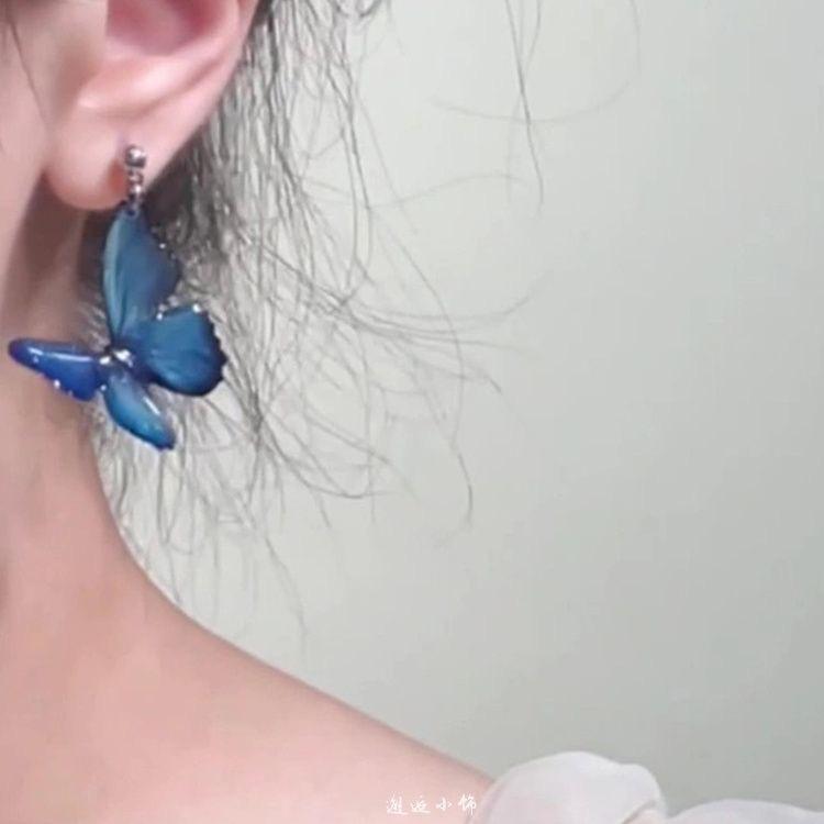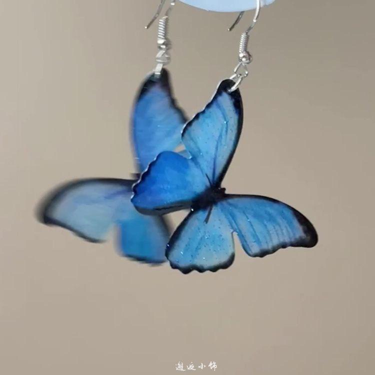 Compre Brincos Grandes de Borboleta Azul Frescos e de Conto de Fadas para Mulheres, Brincos de Design de Nicho Único, Brincos e Brincos Versáteis Estilo Floresta no atacado no Joom.pro