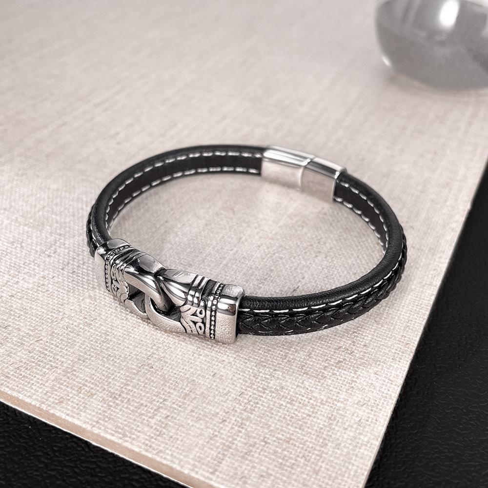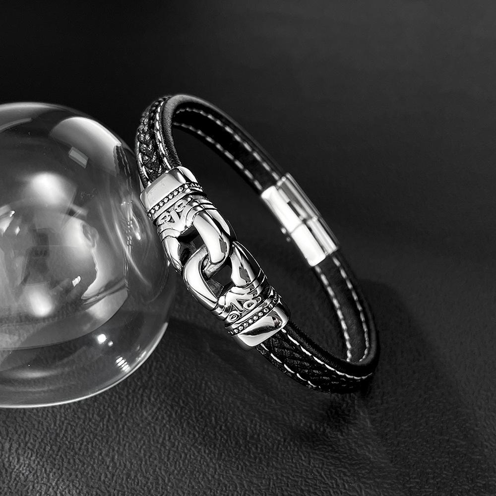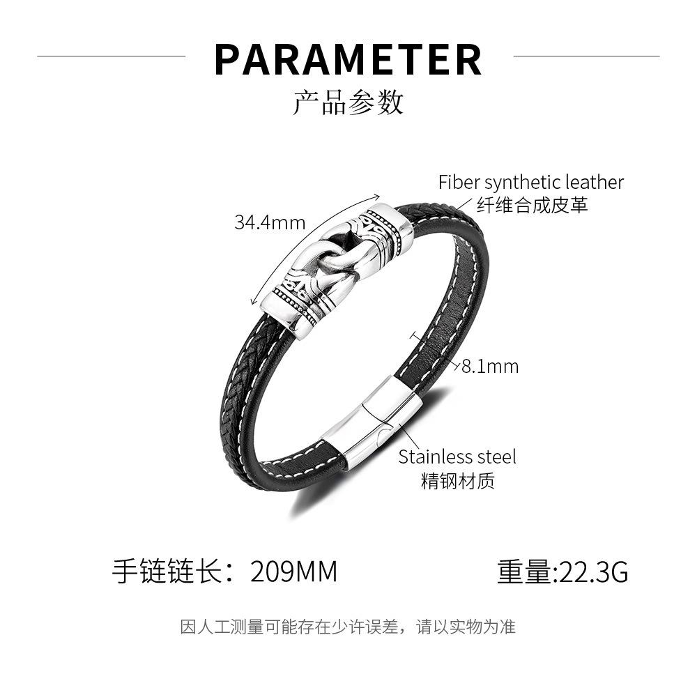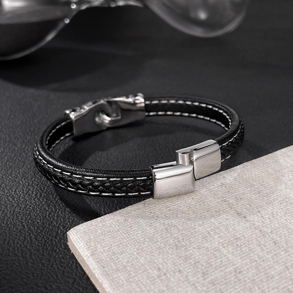 OPK Pulseira de Couro Personalidade Europeia e Americana Transfronteiriça Masculina Aço Inoxidável Tendência de Moda Estilo Punk Aço Titânio Tecido Pulseira de Couro