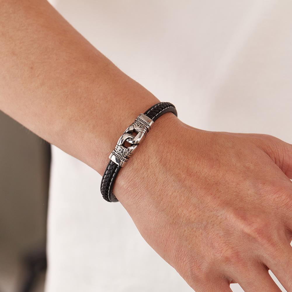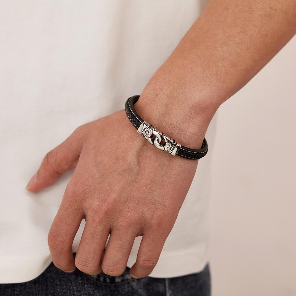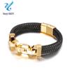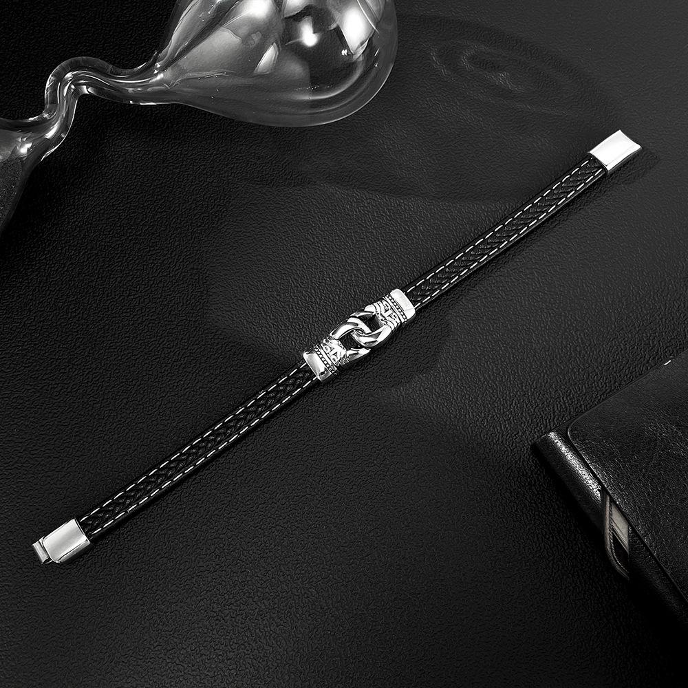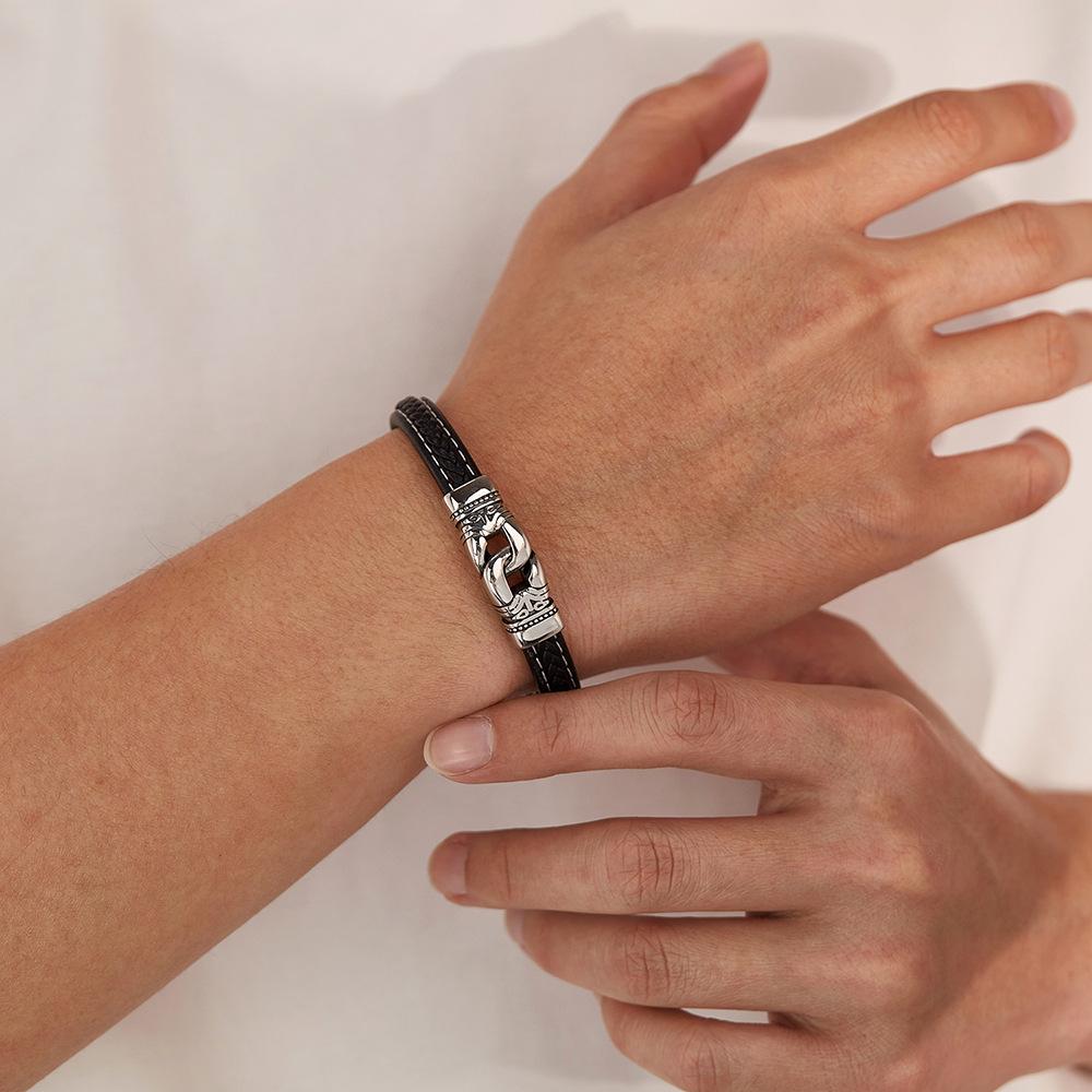 OPK Pulseira de Couro Personalidade Europeia e Americana Transfronteiriça Masculina Aço Inoxidável Tendência de Moda Estilo Punk Aço Titânio Tecido Pulseira de Couro
