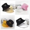 Chapéu de Pescador Xadrez Bordado com Letras Estilo Coreano Feminino Primavera e Verão Protetor Solar Chapéu de Sol Versátil Estilo Francês Que Afina o Rosto Chapéu Balde Pequeno para Homens