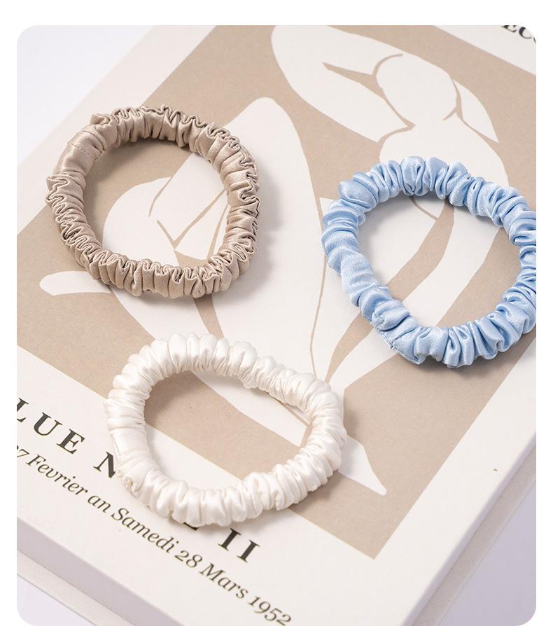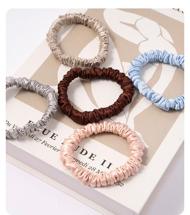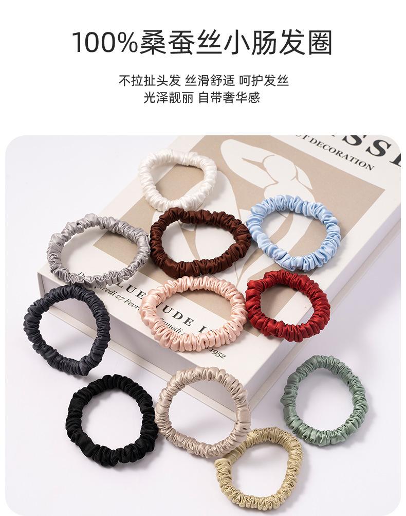 Anel de cabelo de seda pesada para mulheres, tamanho pequeno, corda de cabelo simples, rabo de cavalo, cabeça de bola, acessórios para cabelo do intestino delgado