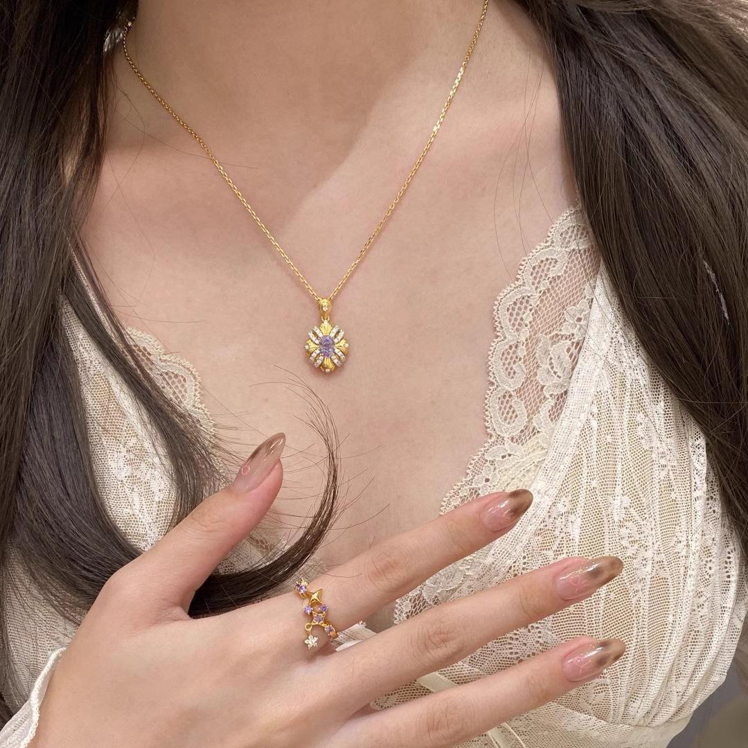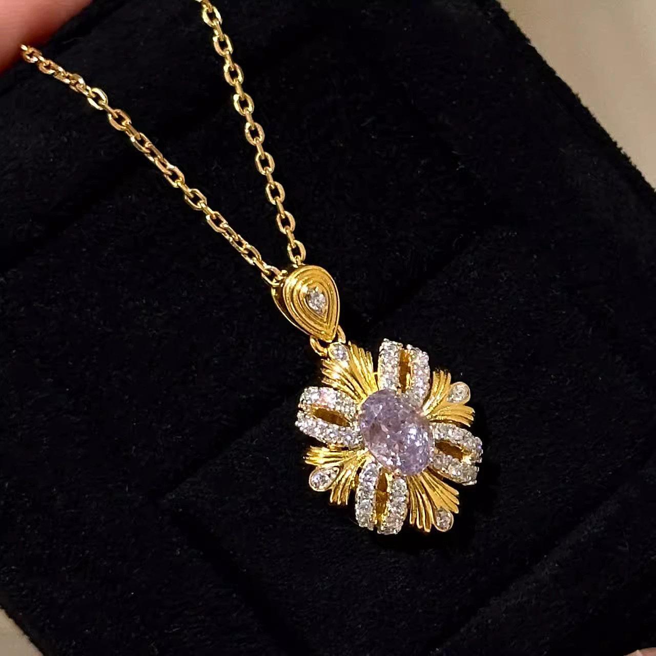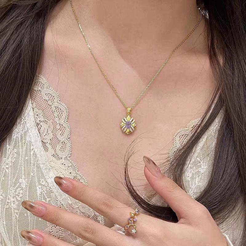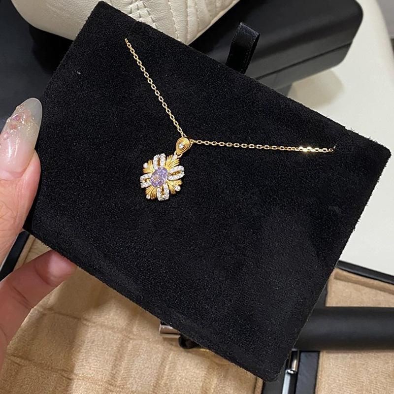 Colar Bauhinia com girassol e diamantes brilhantes 2025, novo, francês, retrô, aço titânio, corrente de clavícula antidesbotamento, atacado