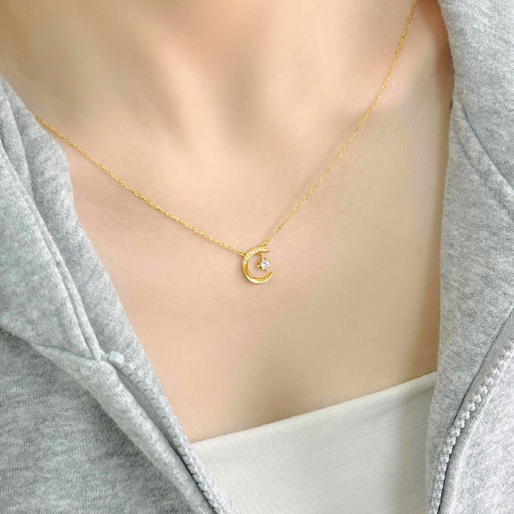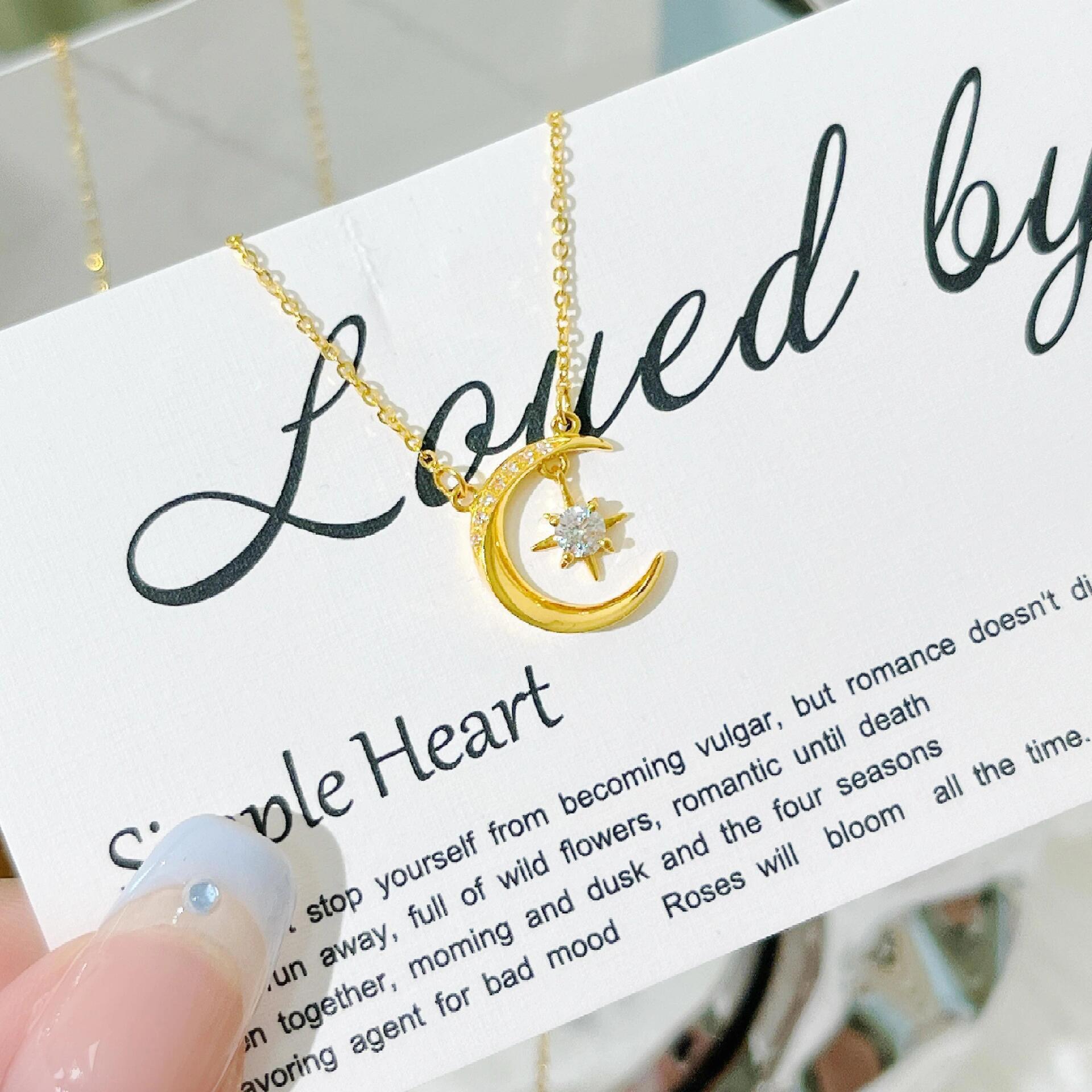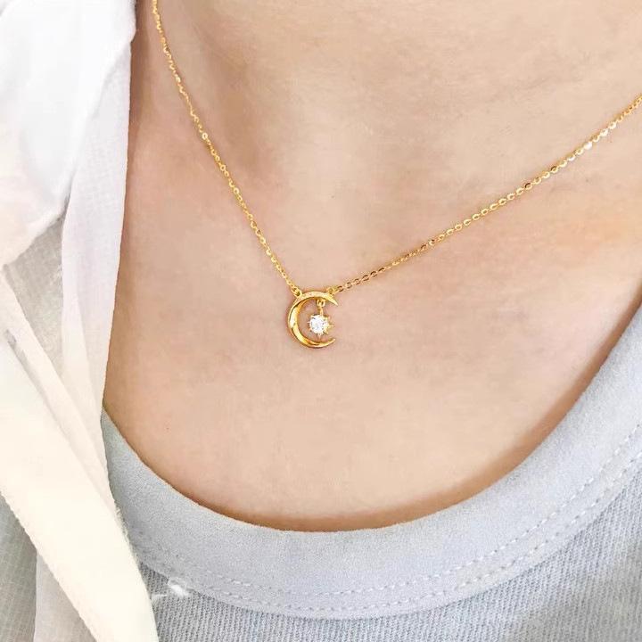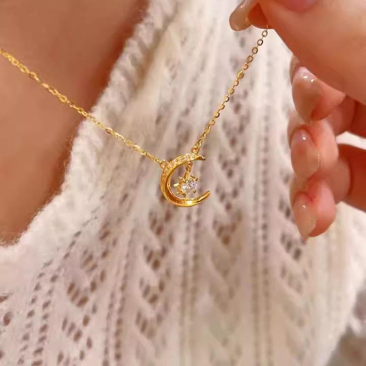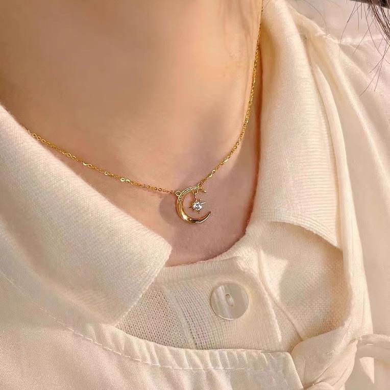 Colar de estrela e lua com diamantes dourados 2025, novo design de nicho de fantasia, aço de titânio, corrente de clavícula que não desbota, joias para atacado