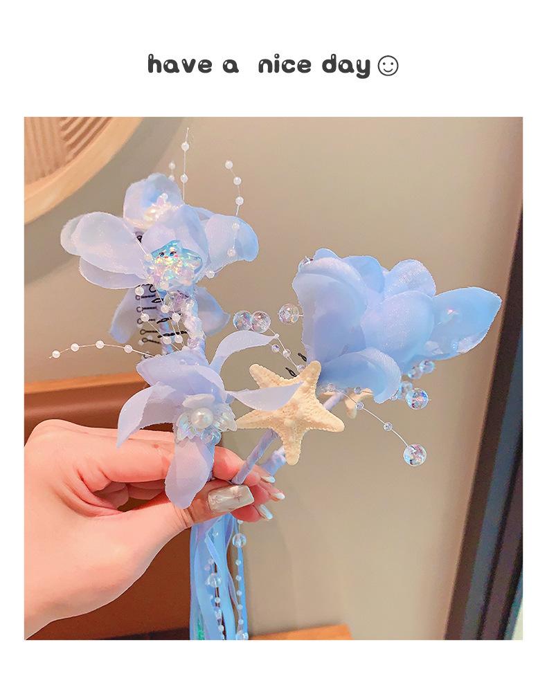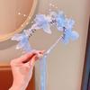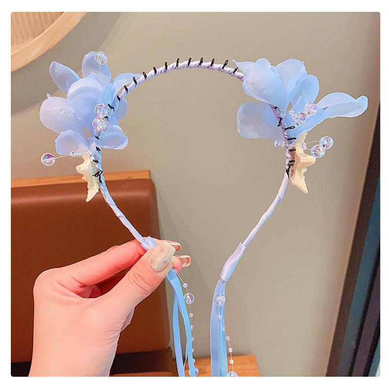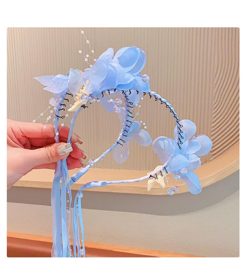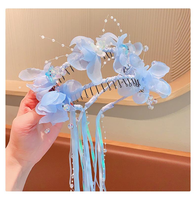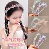 Coroa de Princesa Azul Infantil Tiara Streamer 2025 Novo Meninas Estilo Floresta Super Fada Acessórios de Cabelo Trançado Tiara de Menina