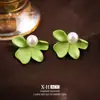 Brincos de pérolas elegantes com flores francesas e agulha de prata, brincos pequenos e requintados, leves e luxuosos para mulheres, atacado