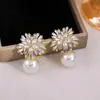 Compre Brincos de pérolas elegantes com flores francesas e agulha de prata, brincos pequenos e requintados, leves e luxuosos para mulheres, atacado no atacado no Joom.pro