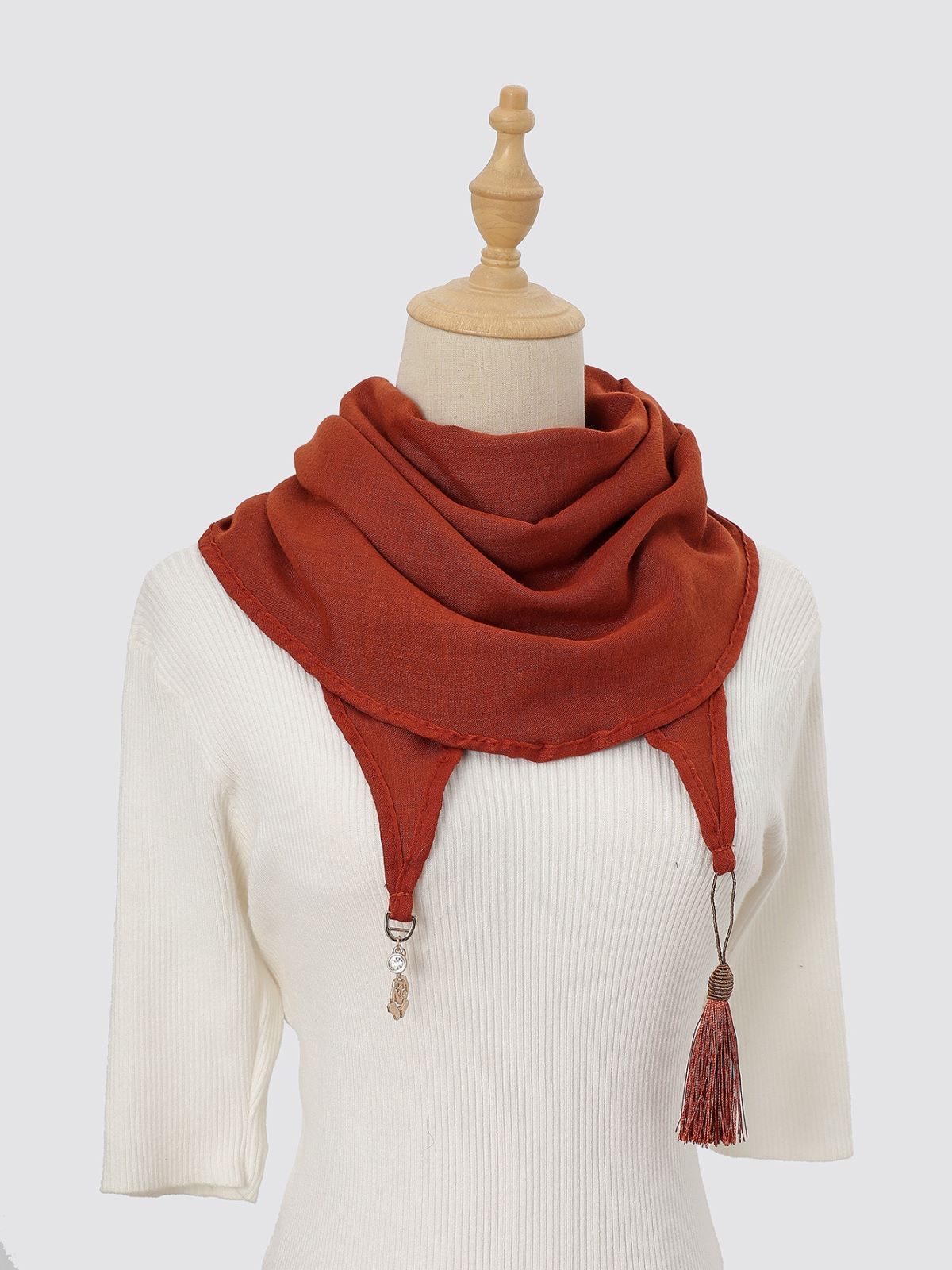 Outono 2025 Novo Cachecol de Algodão e Linho Cor Pura com Pingente, Aquecedor de Pescoço Fashion e Versátil, Cachecol Longo, Cachecol Estilo Franja