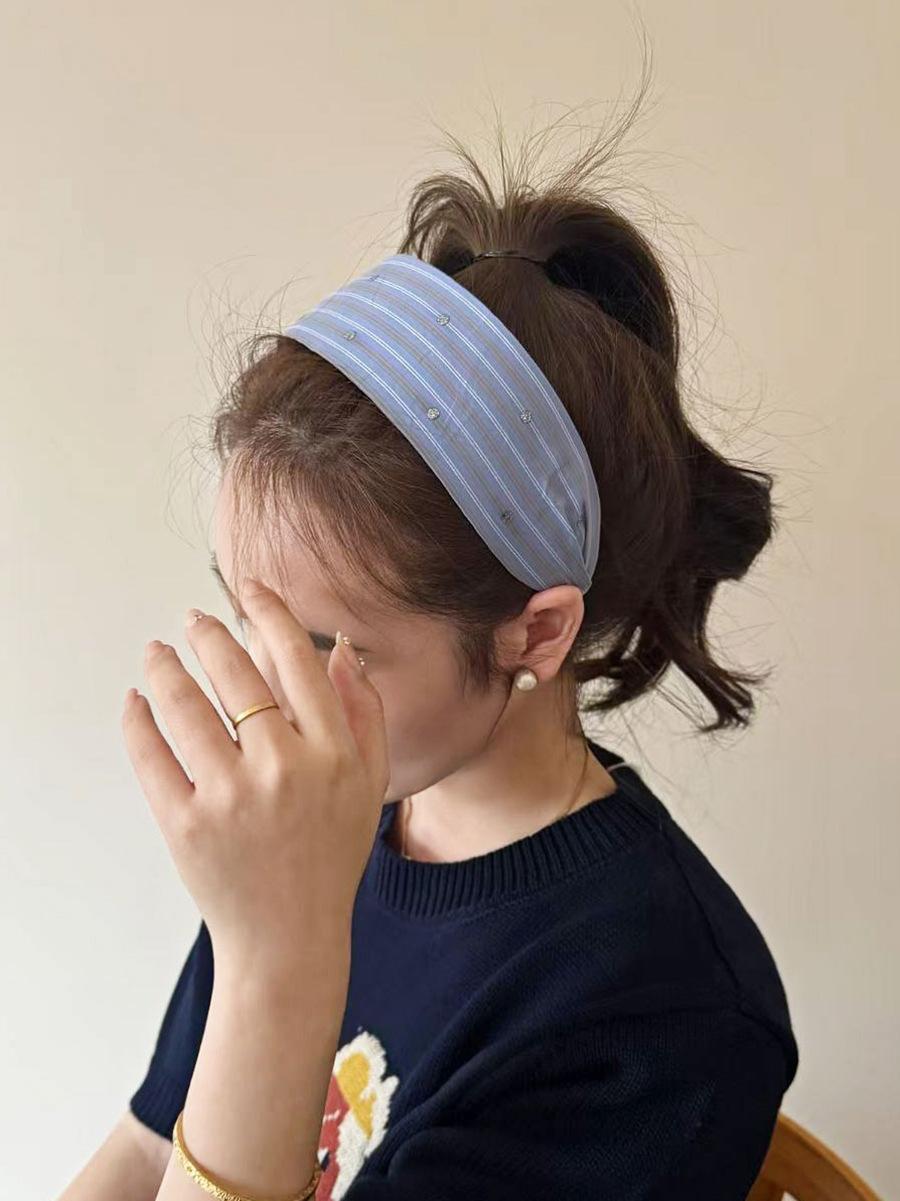 Grampos de cabelo listrados de aba larga simples, estilo coreano, para primavera e verão, faixa de cabelo com cabeça alta e craniana, acessórios de cabelo femininos, touca