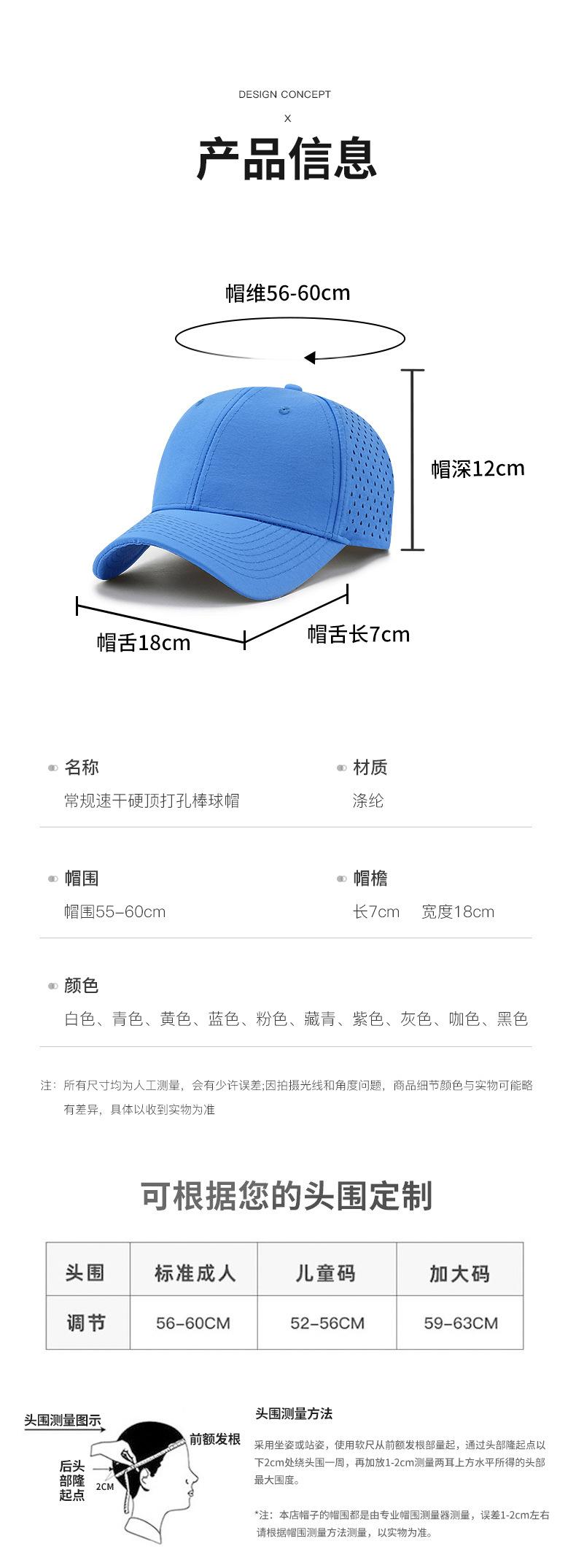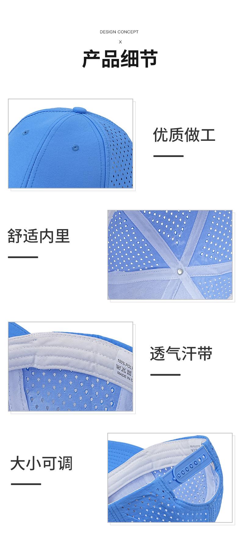 Boné esportivo masculino respirável com perfuração a laser e secagem rápida, boné de beisebol de secagem rápida com parte superior rígida e à prova d'água para o verão