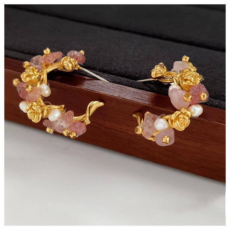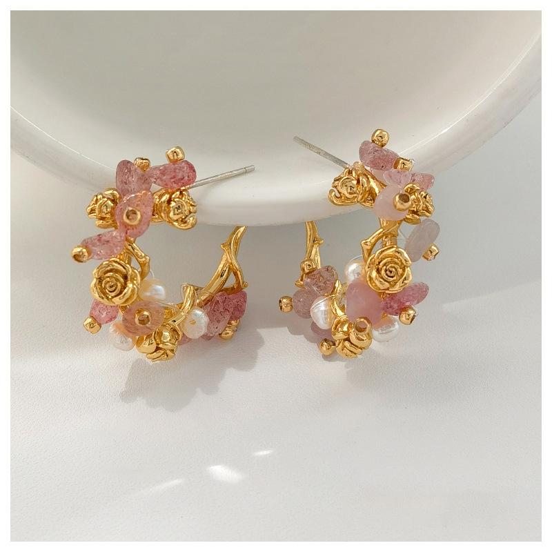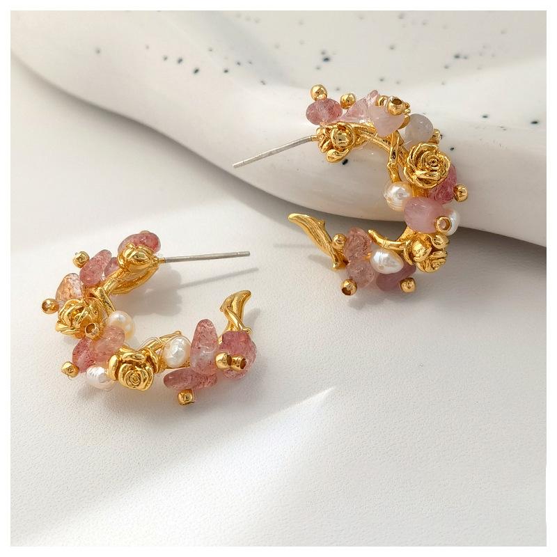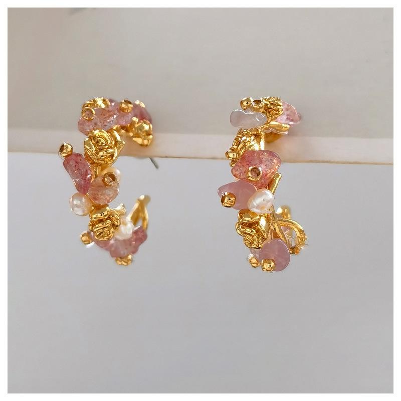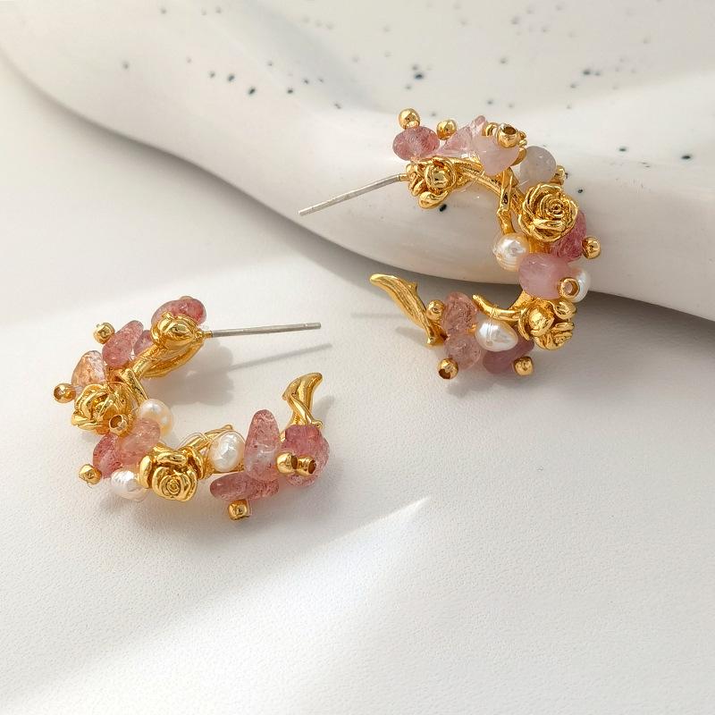 Compre Brincos de pérola com anel de cristal de morango galvanizados a ouro 18k, brincos de moda requintados, leves, luxuosos e elegantes de alta qualidade no atacado no Joom.pro