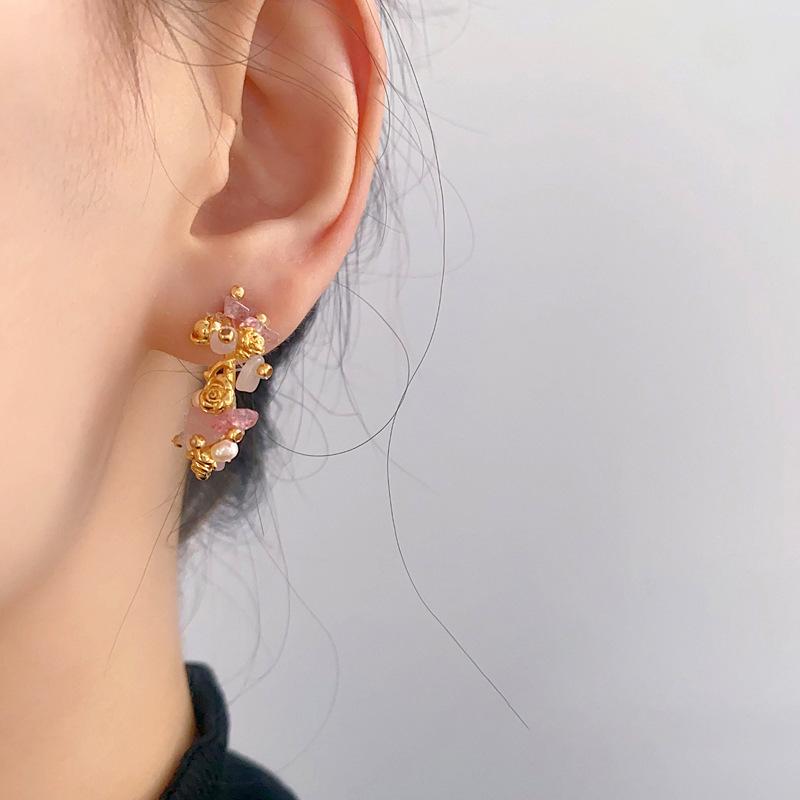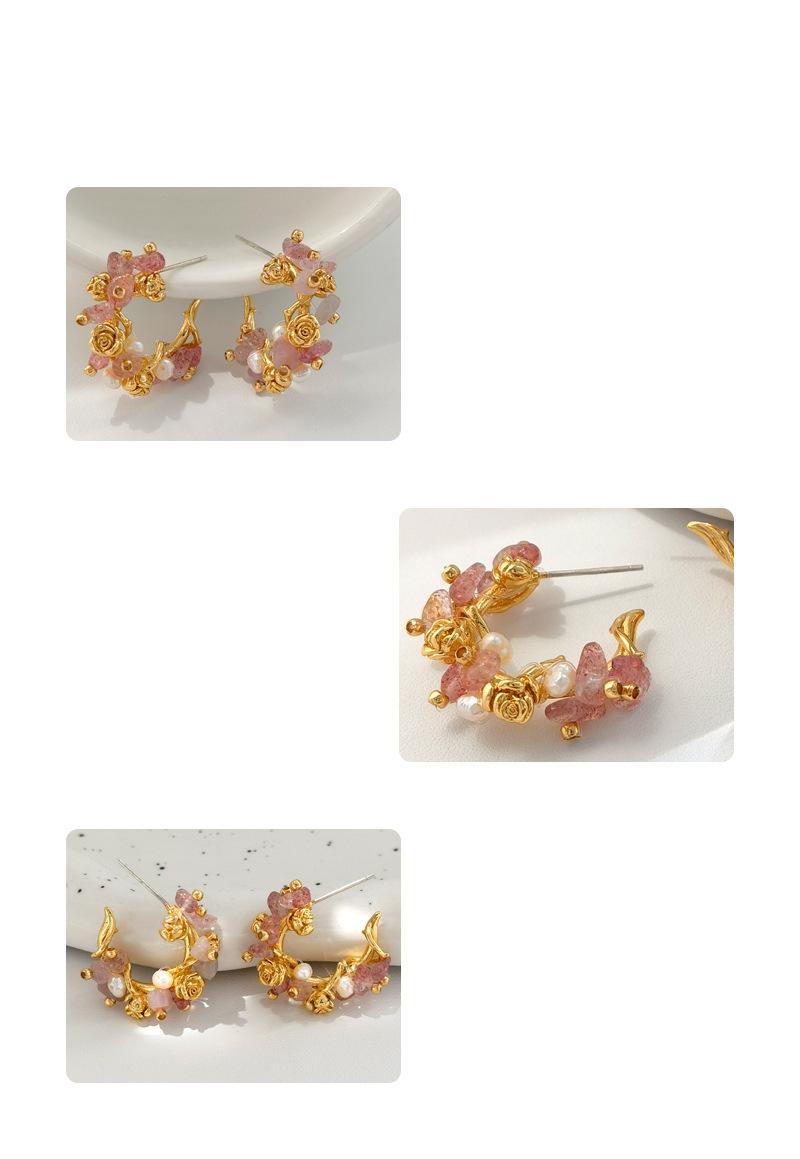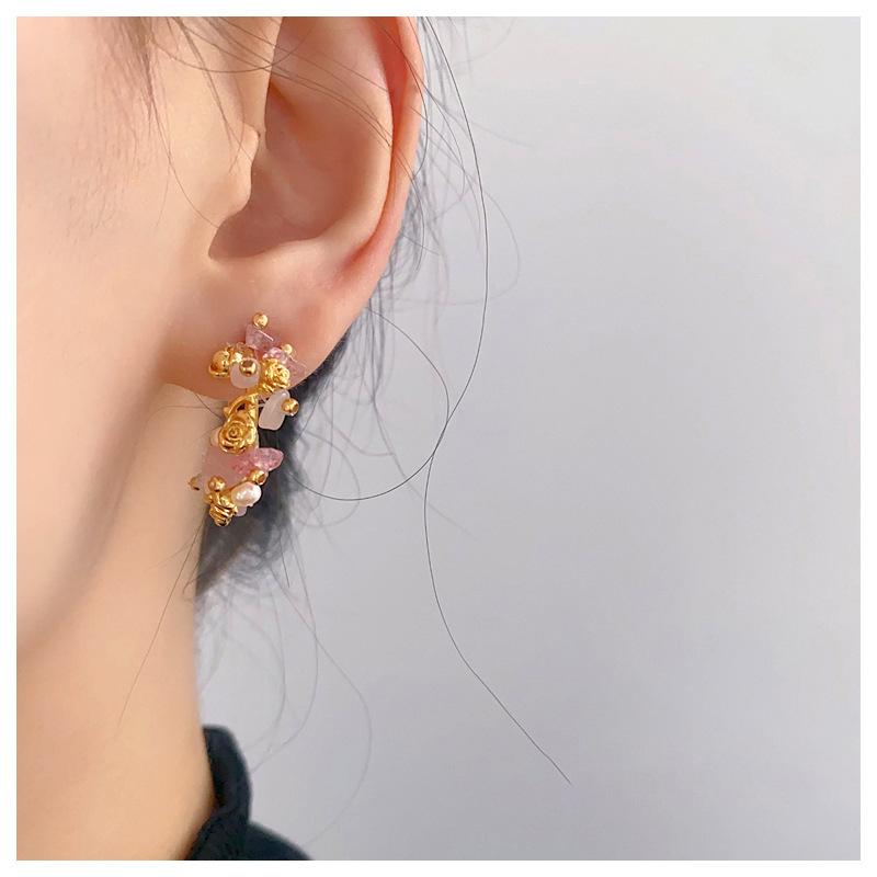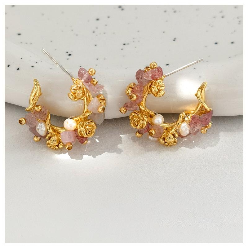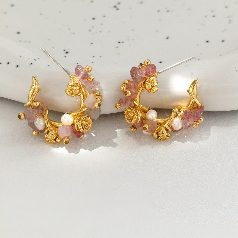 Compre Brincos de pérola com anel de cristal de morango galvanizados a ouro 18k, brincos de moda requintados, leves, luxuosos e elegantes de alta qualidade no atacado no Joom.pro