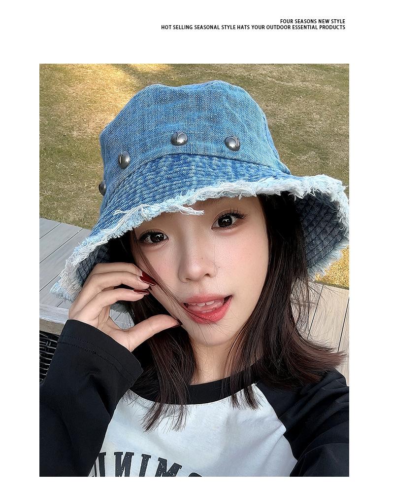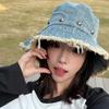 Chapéu Primavera e Verão Chapéu de Pescador de Jeans Babado Feminino Vintage Chapéu Grande Antigo Aba Mostra Rosto Pequeno Chapéu de Sol Chapéu Bacia Unha Salgueiro para Homens