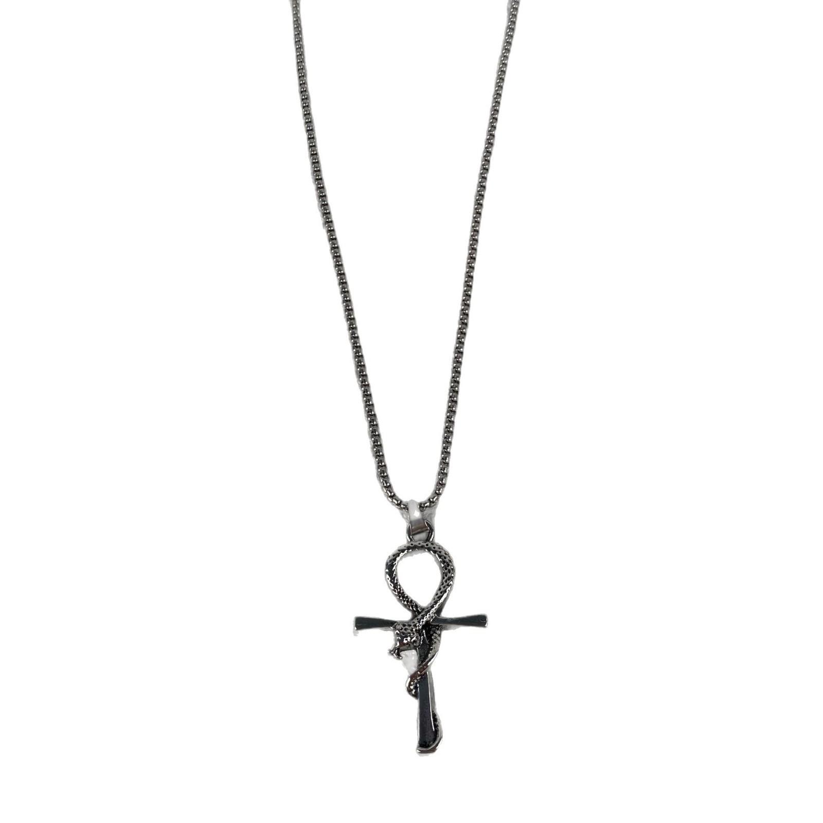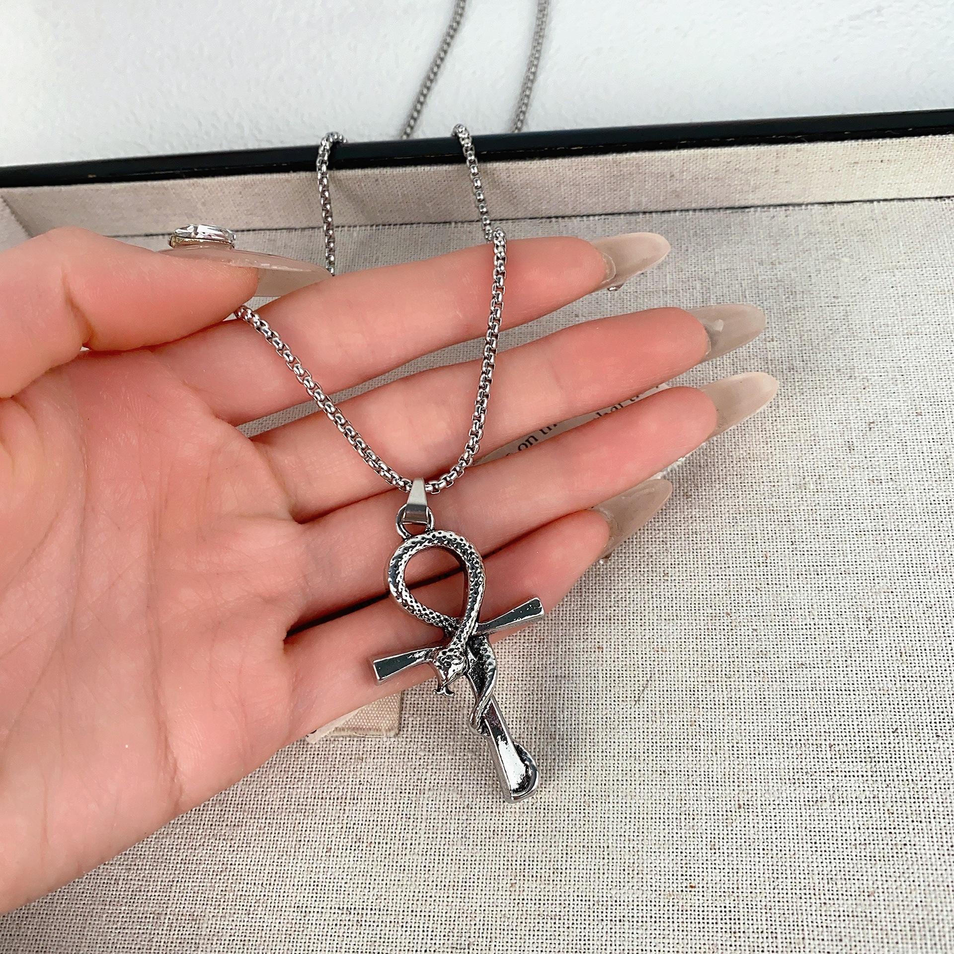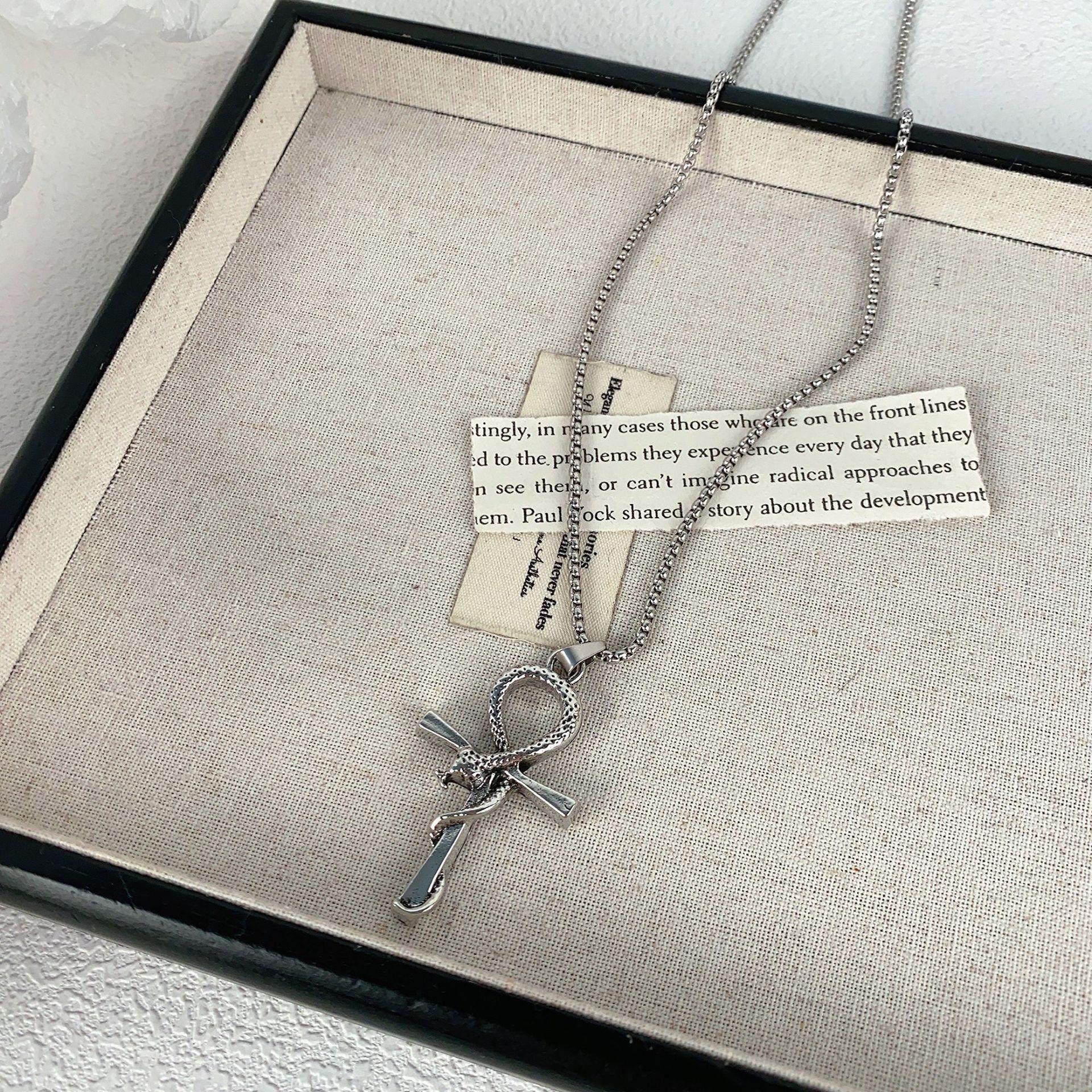 Colar Pingente Cruz Cobra Vintage Moda Europeia e Americana Transfronteiriça Corrente Longa para Clavícula Colar com Design de Personalidade de Nicho