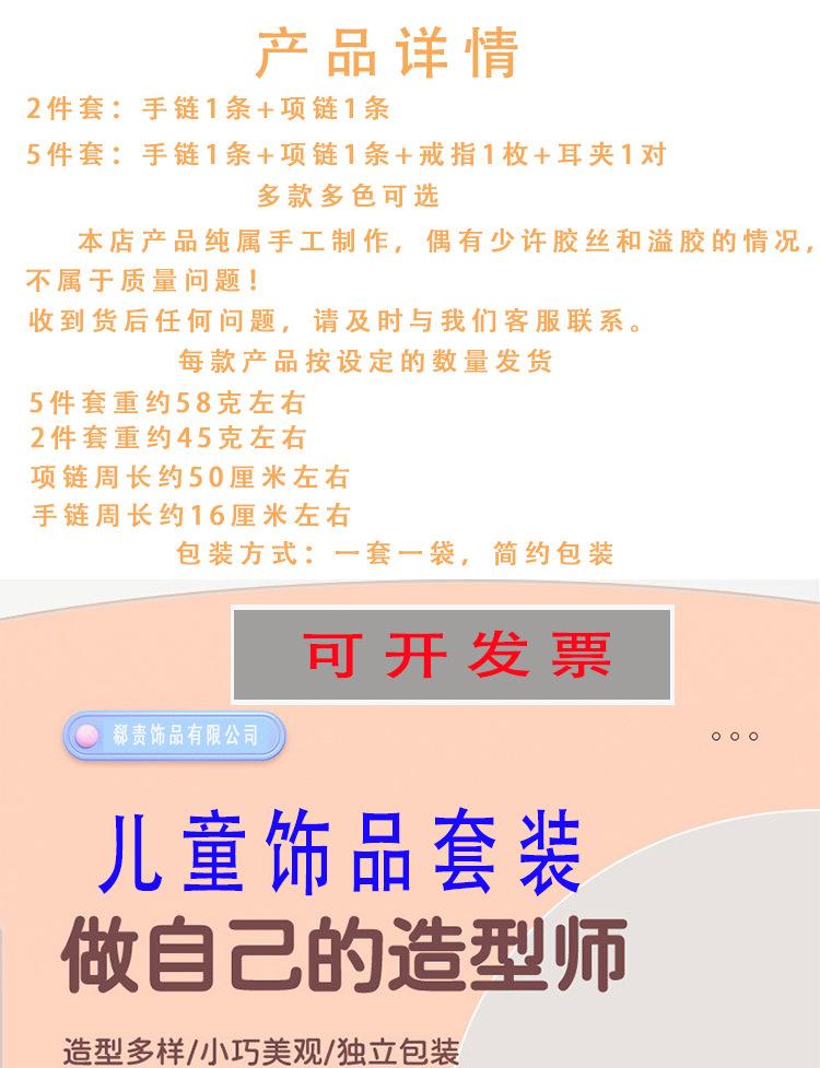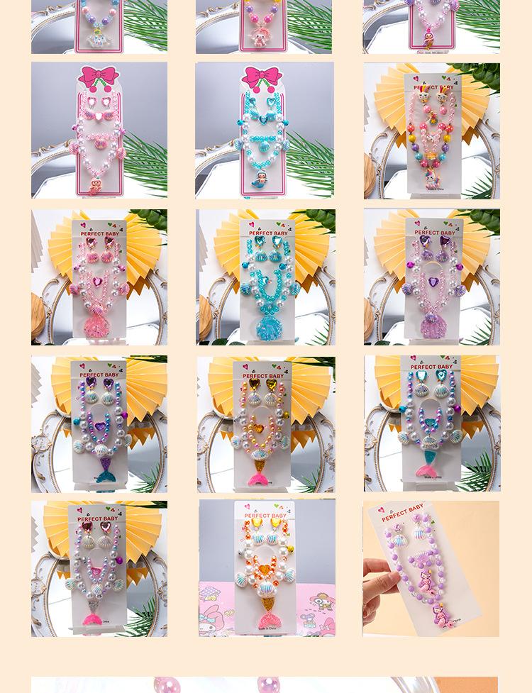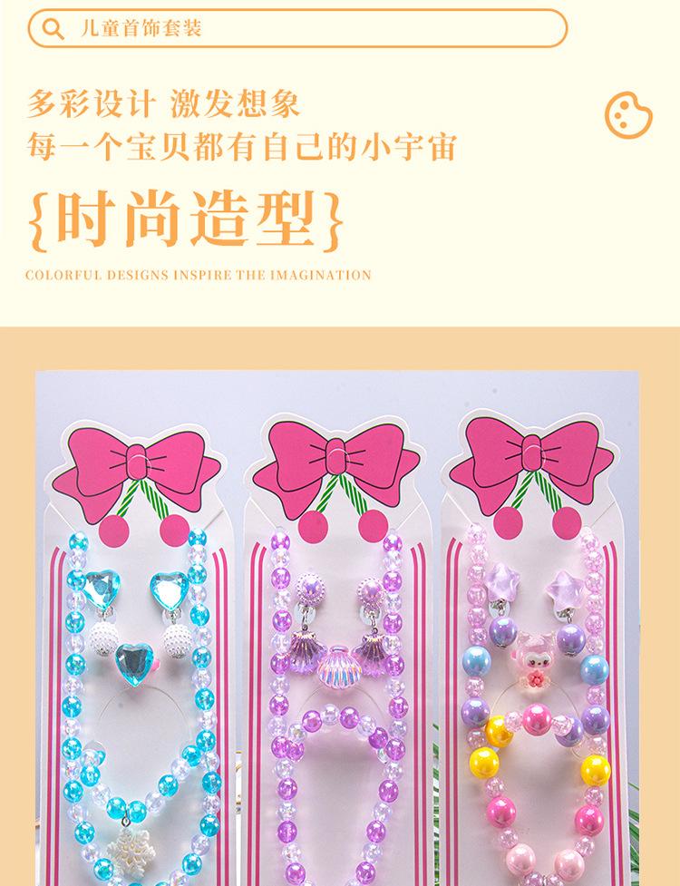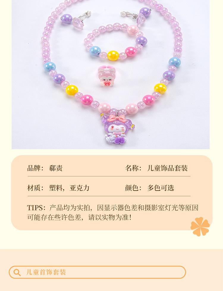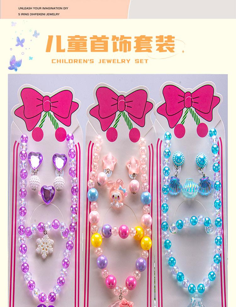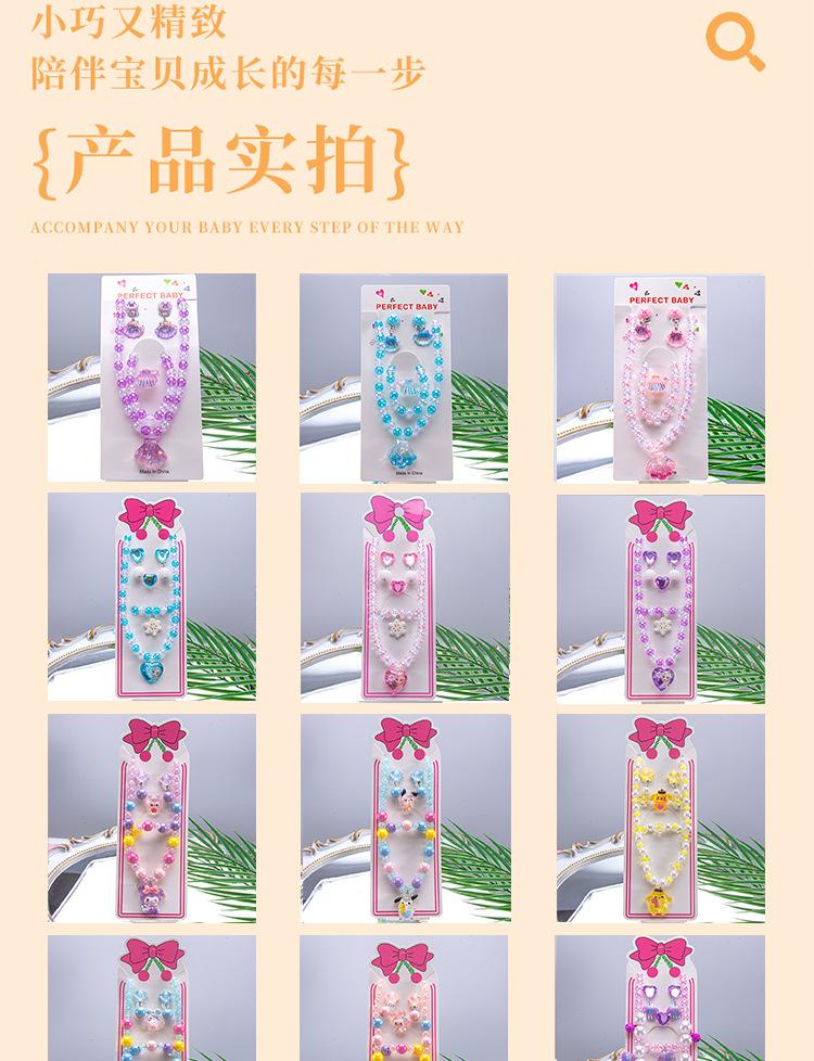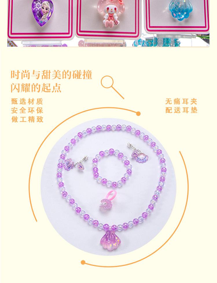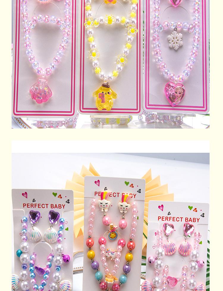 Colar de joias infantil com desenho animado, pulseira, anel, princesa, acessórios com miçangas, menina, fofo, bebê, menina, joias, presente