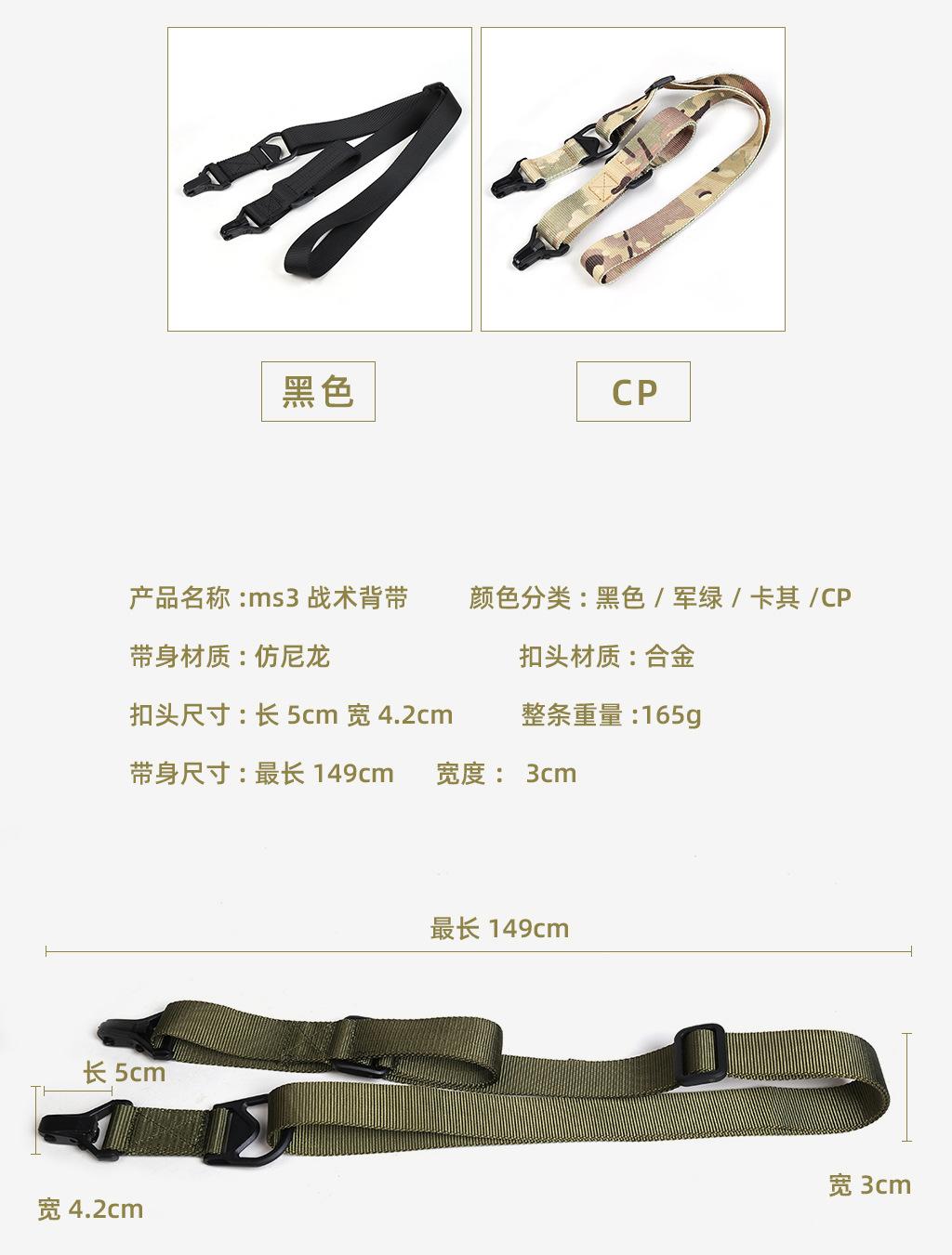 Bandoleira Tática Popular Transfronteiriça de Dois Pontos Outdoor Multifuncional Ms3 Diagonal Corda para Arma Nylon Bandoleira para Arma de Água em Estoque