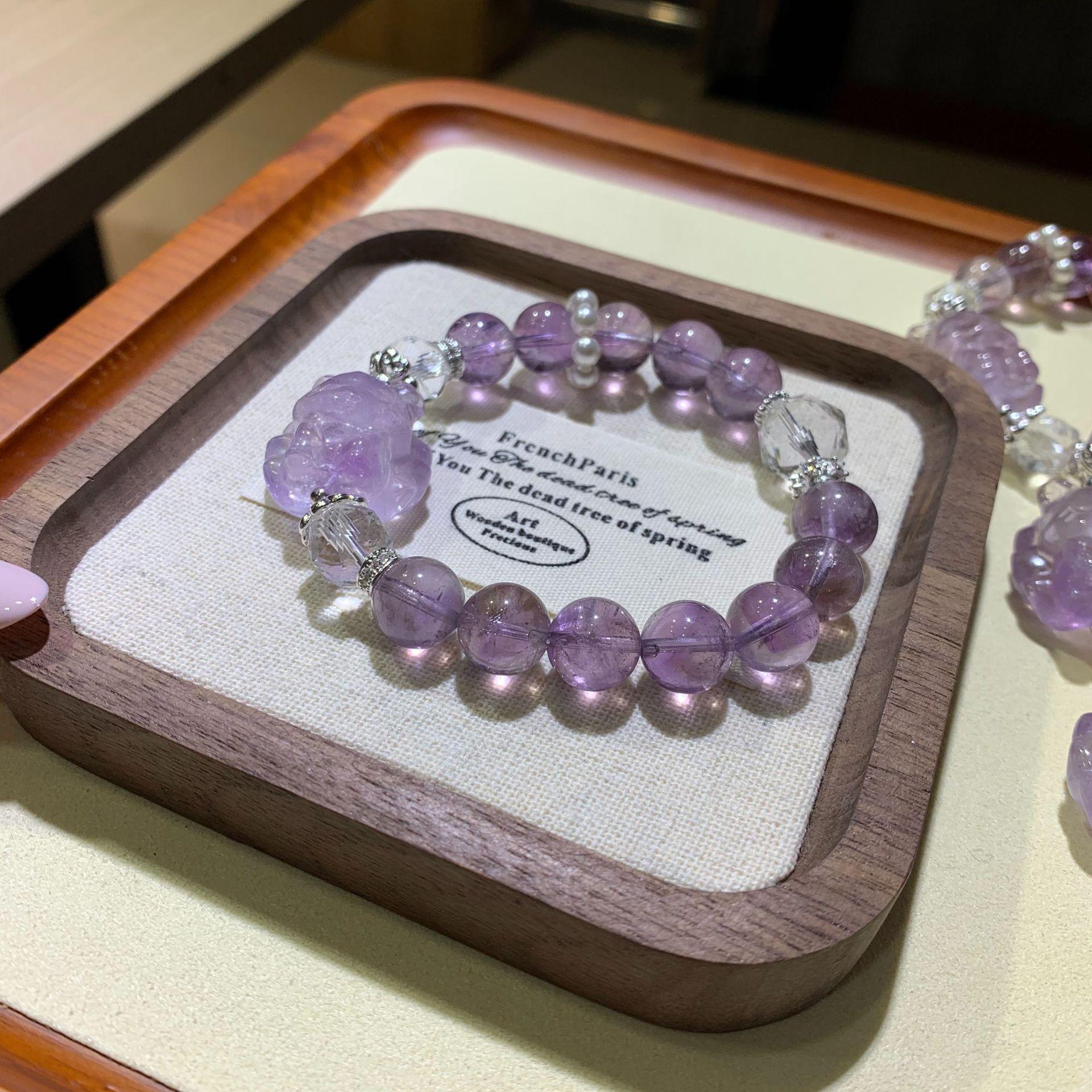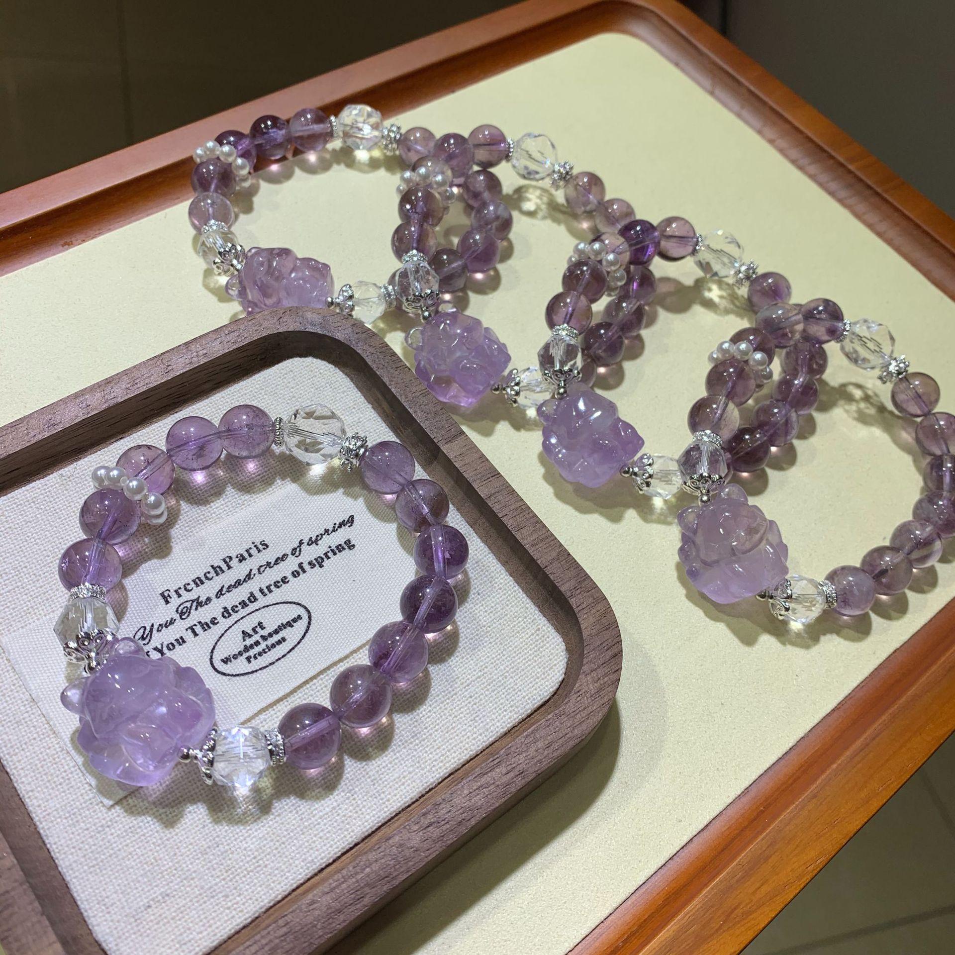 Pulseira de Ametista de Design Original com Contas Redondas Feitas à Mão Atacado Pulseira de Cristal Natural
