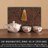 Ru kiln·lard jelly with gold peony flower_xi shi pot one pot two cups [tassel gift box]