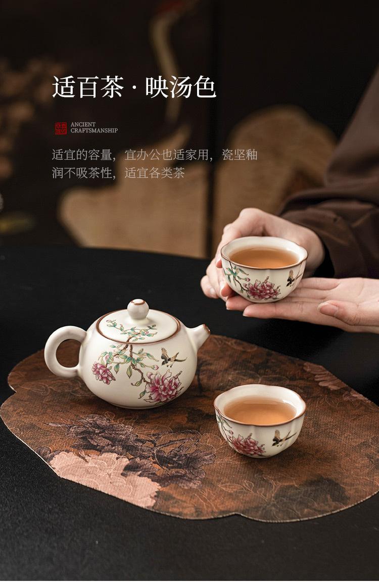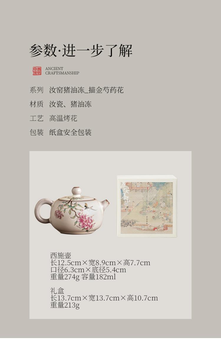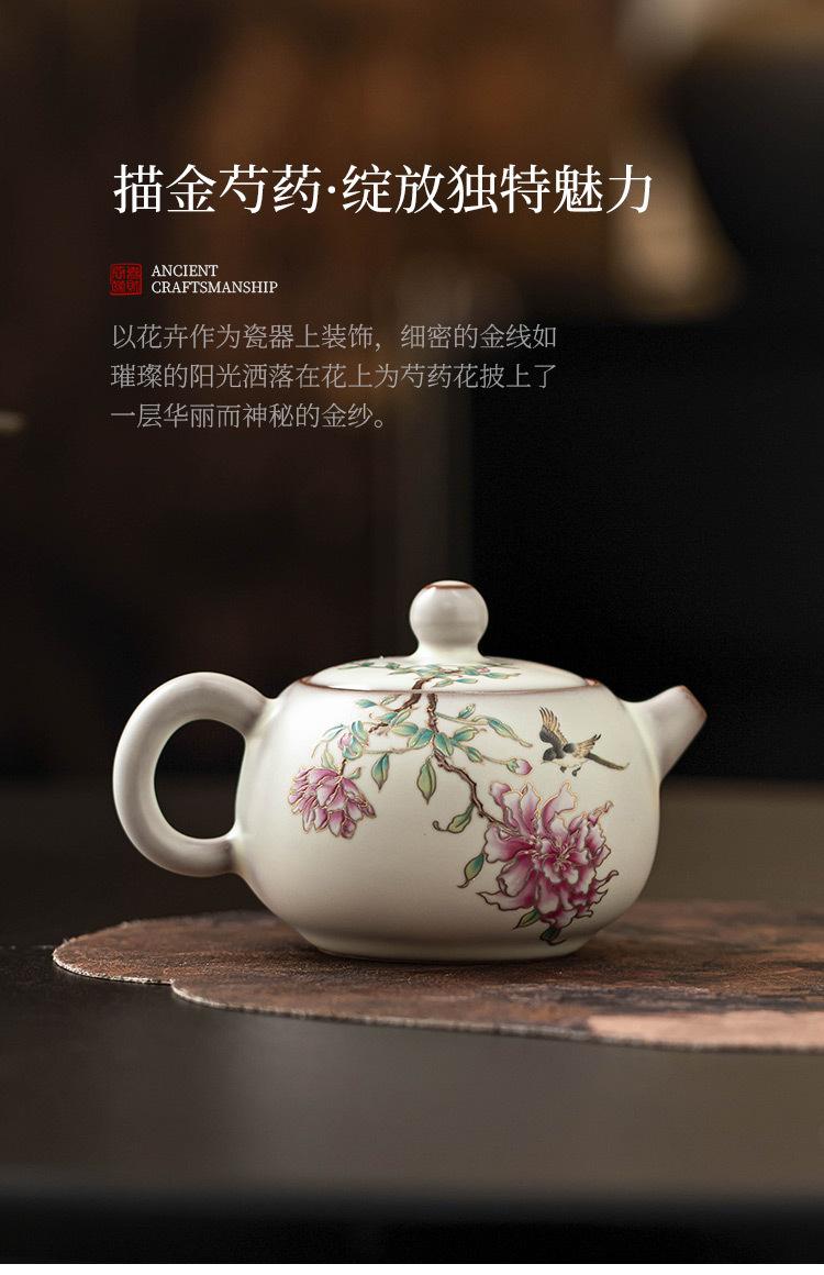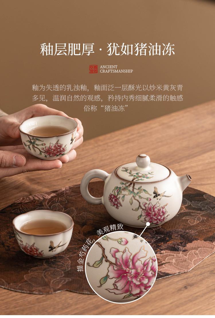 Ru kiln·lard jelly drawing gold peony flower_xi shi pot one pot two cups [simple decoration]